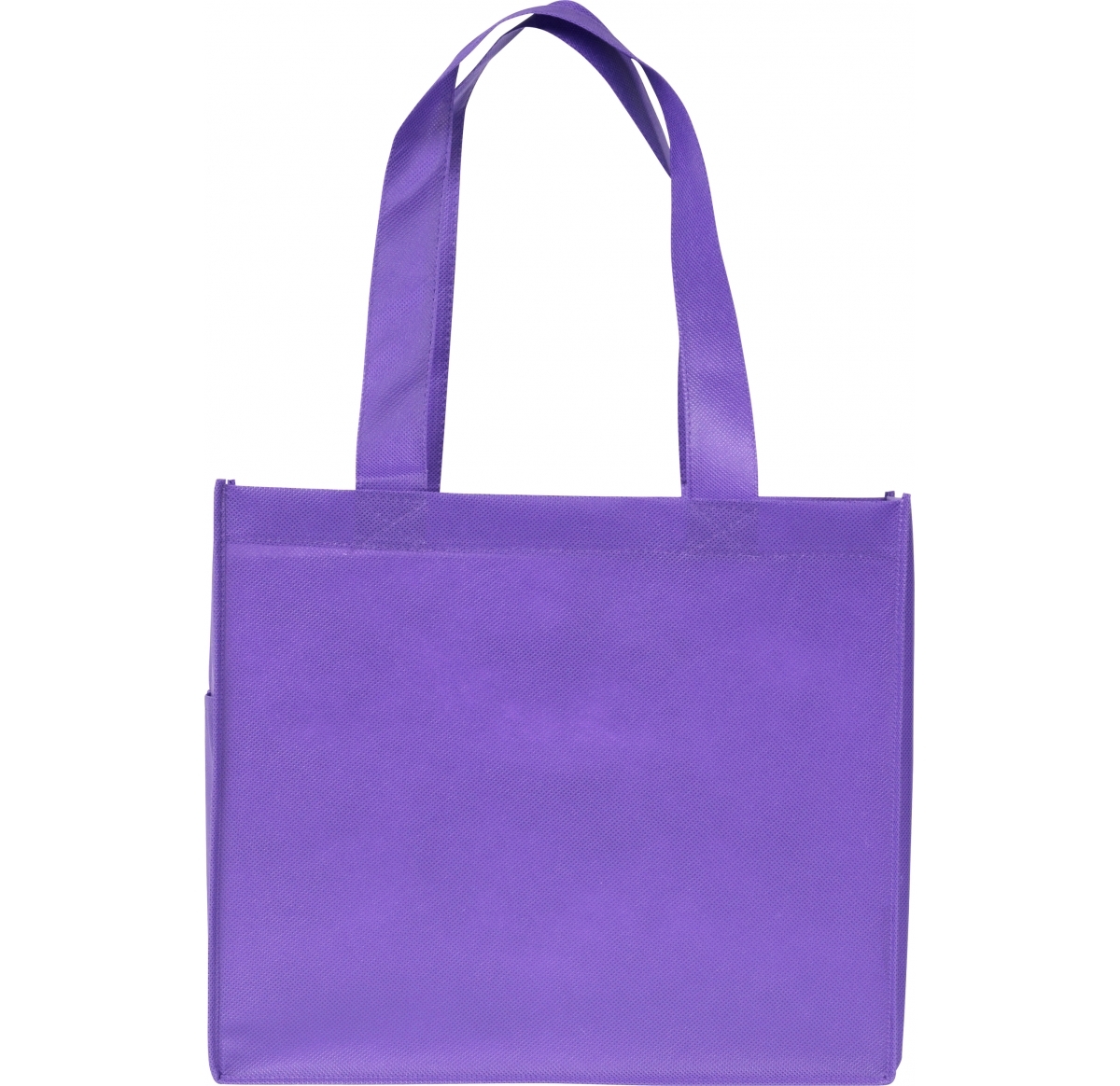 Environmentally friendly tote bag made from partly recycled 80 GSM non- woven polypropylene c/w base board, side pocket and 60cm handles