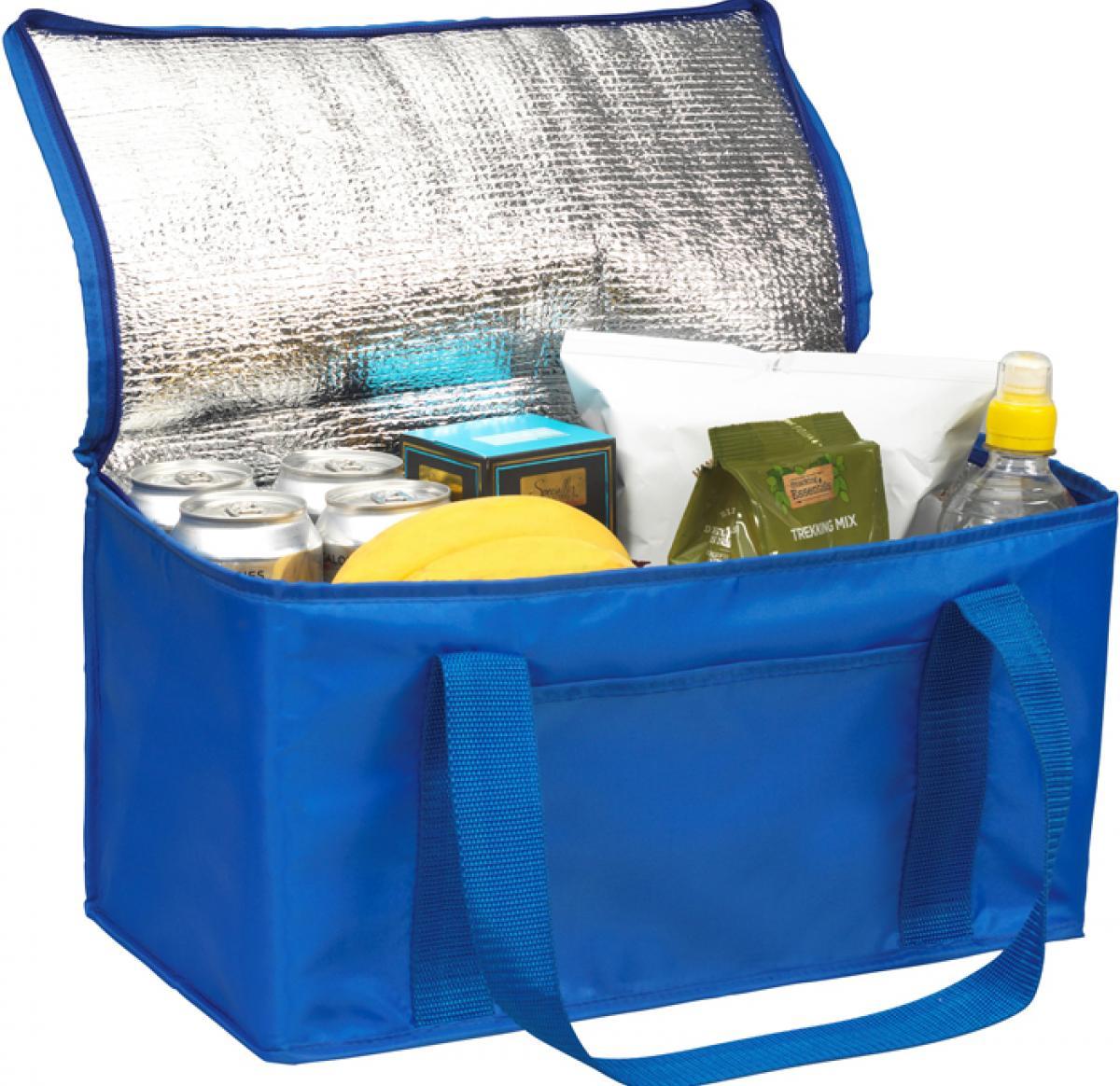 Large cooler bag made from REACH compliant 210d polyester c/w extra large frontal slip pocket & carry handles.