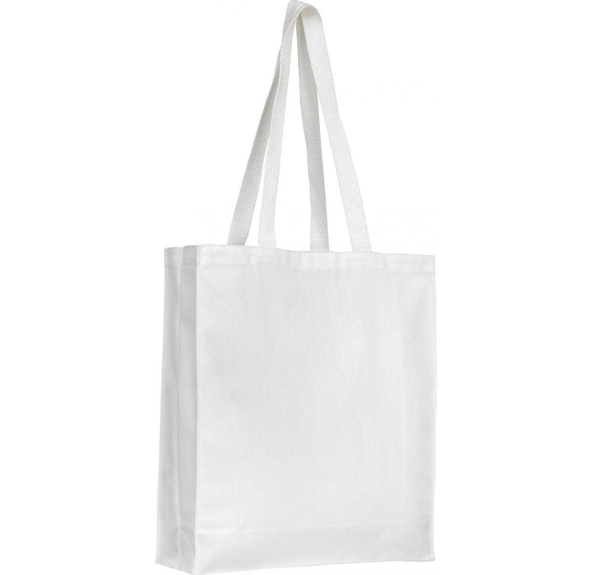 Logo Printed Tote Bags Canvas 8oz Gussetted Long Handles - White