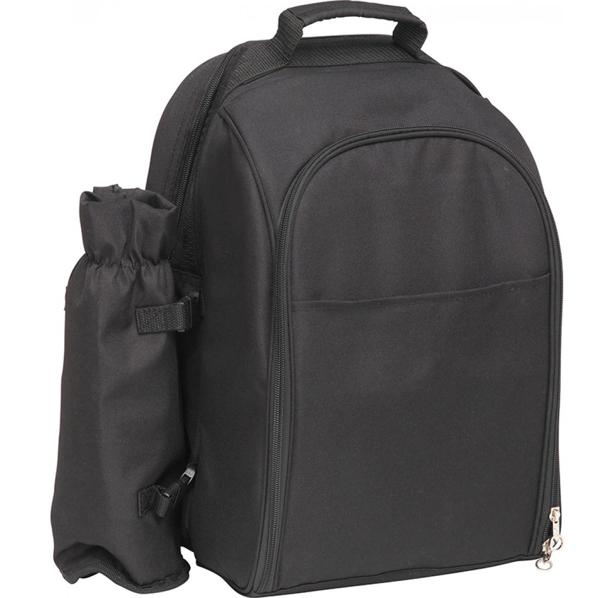 Made from Reach compliant 600d Polyester. With a detachable bottle cooler, PEVA cooler sectionFront Pocket with cutting board, bottle opener/corkscrew, salt and pepper shakers, 2 knives, forks, spoons, PS wine 'glasses', plates and napkins.