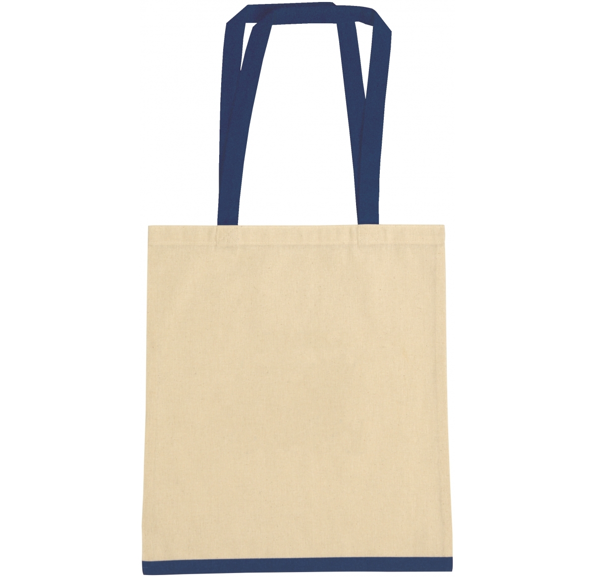 140gsm natural cotton tote c/w contrast colour 105gsm long cotton handles & contrast print.