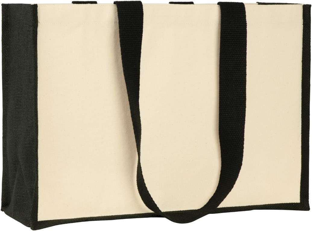 Printed Eco Jute 10oz Canvas Tote Shopper Bags Contrast Trim - Natural / Black