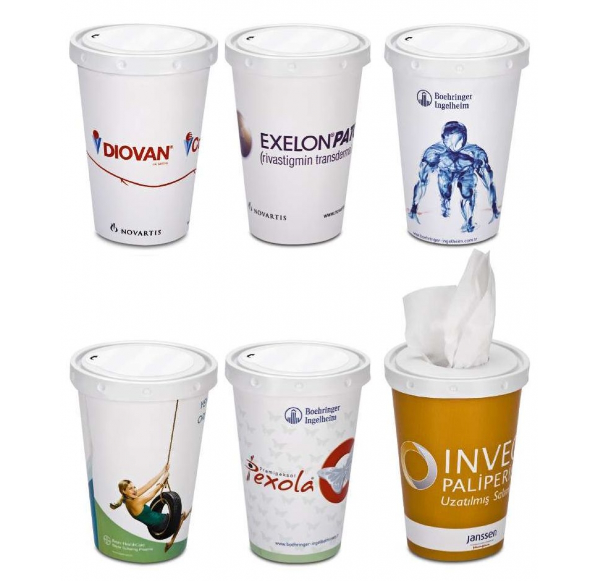 a Unique and practical full colour printed Tissue Cup. Each cup holds 30 2-ply white tissues and each tissue measures 200 x 205mm.