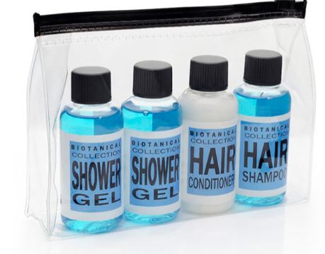 Grab some of our travel toiletry sets for your next marketing campaign! Available in blue or pink these are perfect for a weekend away. Set contains 2 refreshing shower gels, 1 x 50ml shampoo and one 50ml conditioner. These are also perfect for hotel complimentary products.