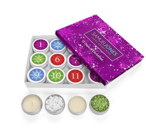 This fabulous box of delights will surely bring great joy this Christmas season, featuring 12 little treats including: 4 candles, 4 lip balms, 1 sleep balm, 1 tin of bath salts, 1 tin of mints and 1 foot balm. Plastic free recyclable packing, suitable for vegans & cruelty free. Natural ingredients. Candles made with a blend of vegetable and soy wax, all neatly packaged in a festive presentation box which is made in the UK from FSC sourced materials and recyclable. Reuse again, regift, or recycle in paper recycling. Prices are based on branding to the lid of the box only, contents come with standard 1 to 12 labels. Contents can be branded at an additional cost