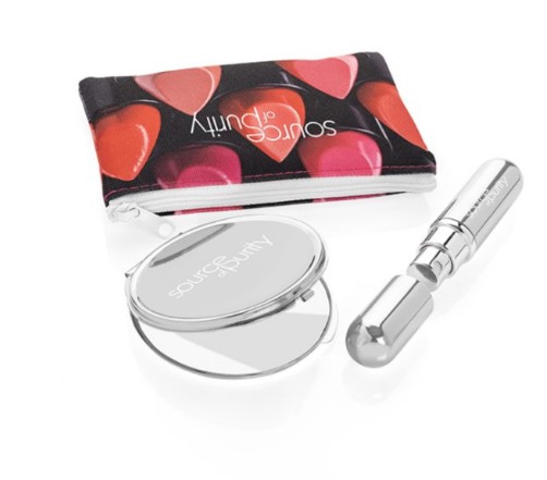 A great little set in a full colour printed cosmetic purse, comes with a perfume atomiser and compact mirror. Price includes branding to the pouch. Contents can be branded at an additional cost.