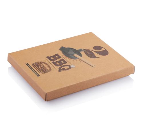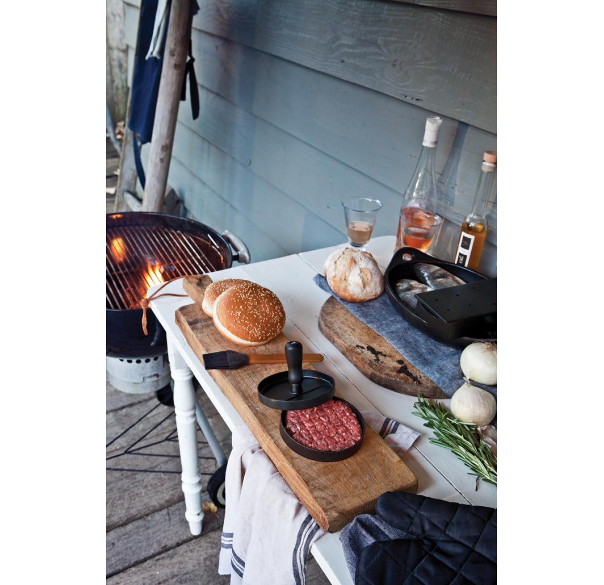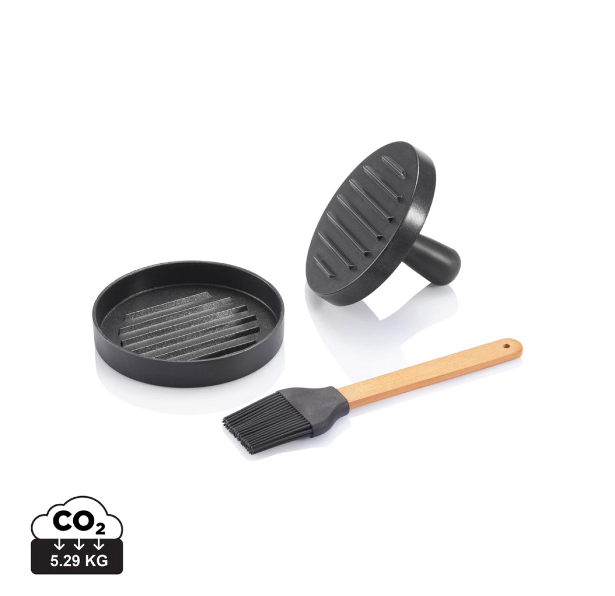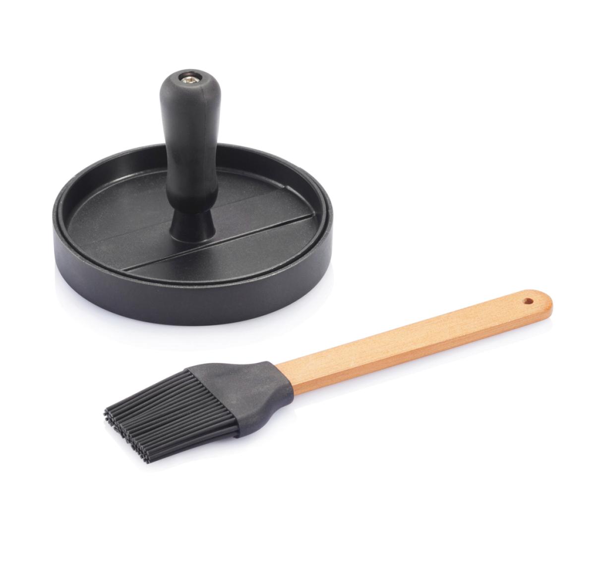 Hamburger set with hamburger press and BBQ brush. Allows you to make and prepare perfect hamburgers.