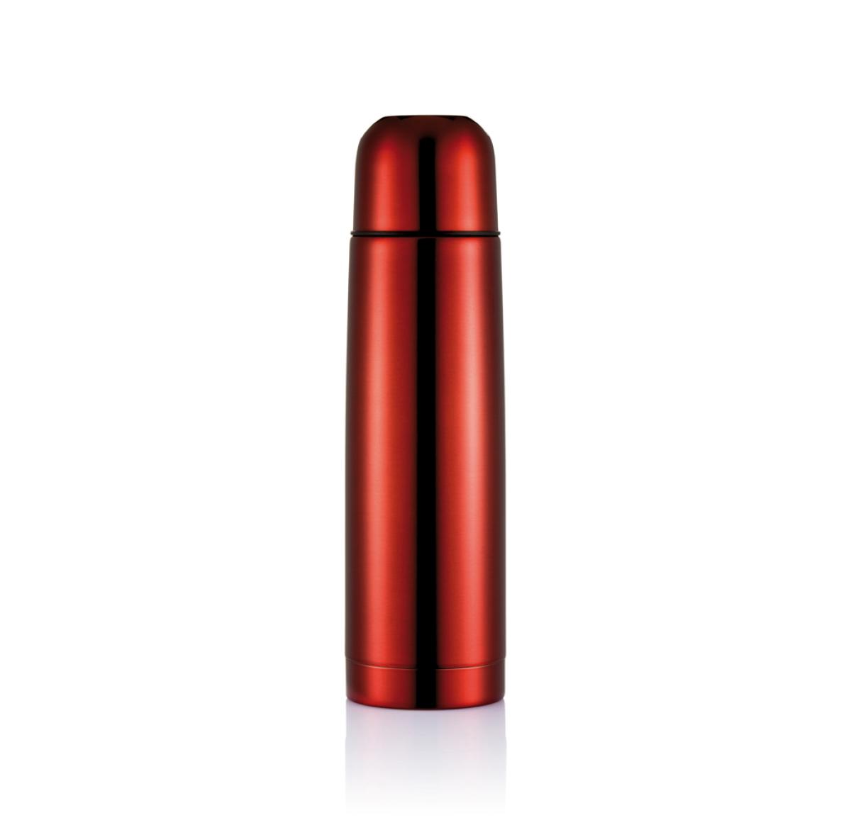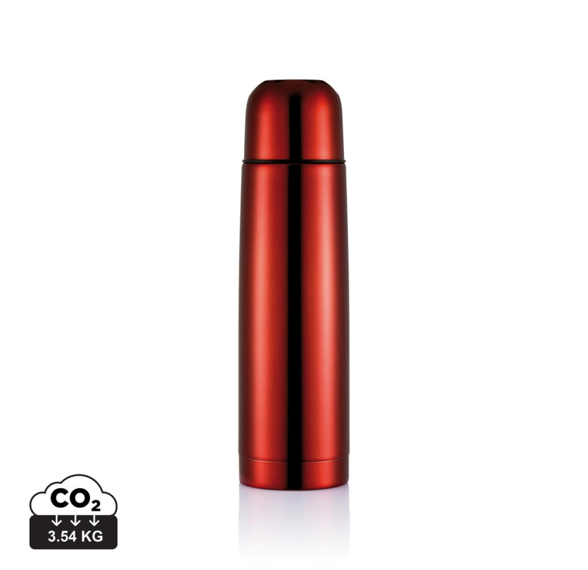 500ml double wall and vacuum stainless steel flask with push closure and cup.