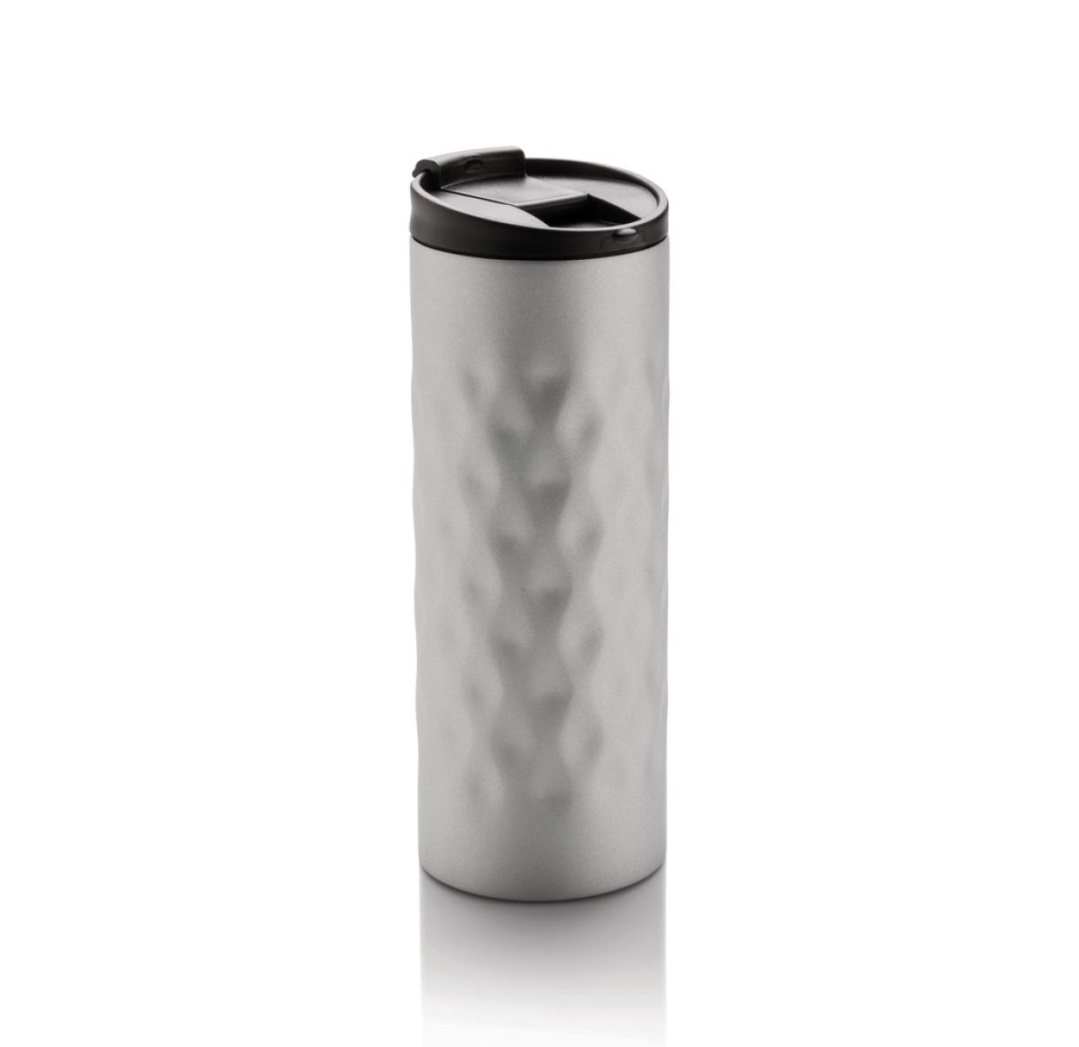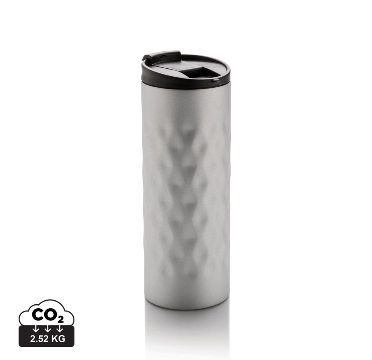 Stainless steel double wall tumbler, with a trendy geometric cut design. Capacity 350 ml.