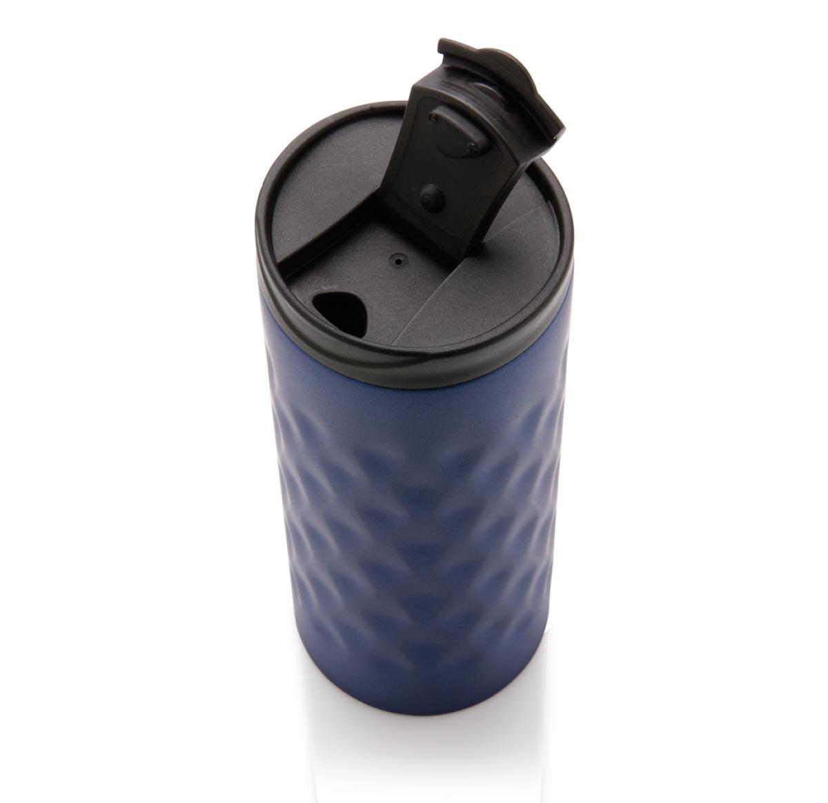 Stainless steel double wall tumbler, with a trendy geometric cut design. Capacity 350 ml.