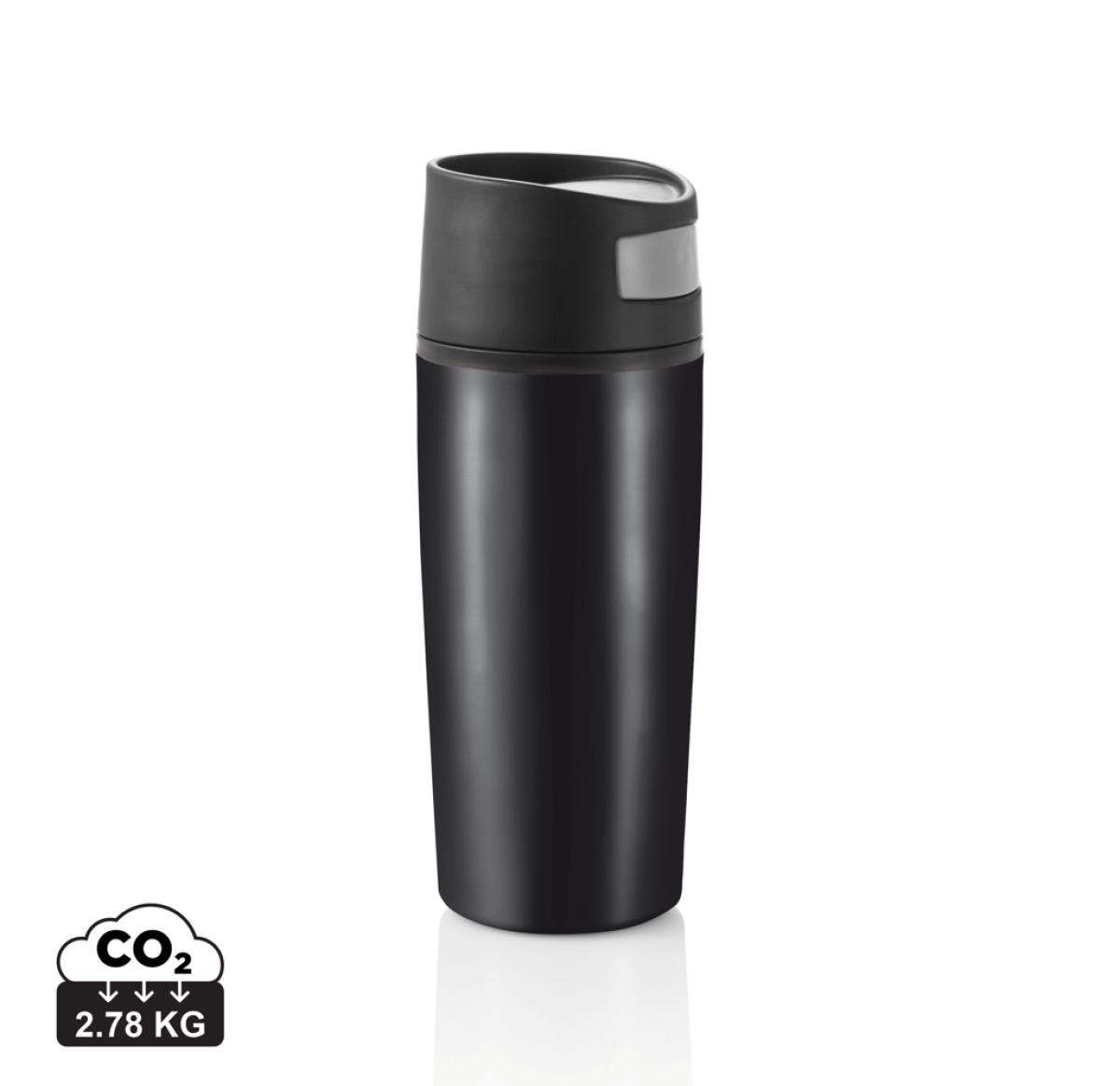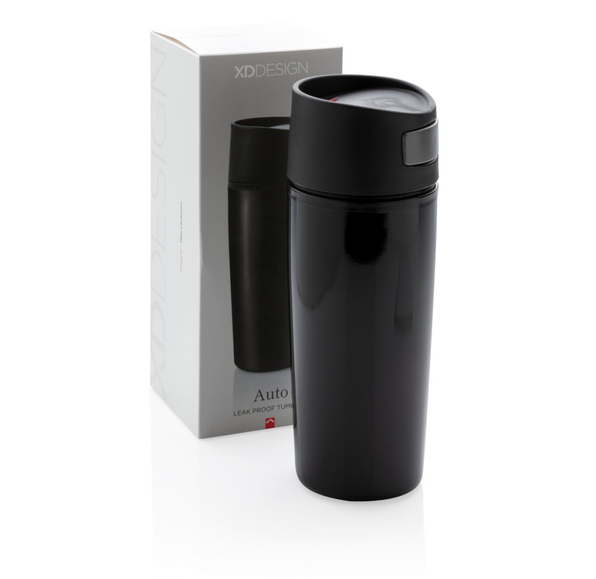 Auto is a 300ml tumbler with black PP coating and an innovative push system which allows you to control it with only one hand. Ideal for in the car. Registered design®