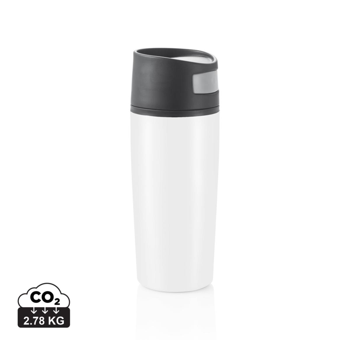 Auto is a 300ml tumbler with black PP coating and an innovative push system which allows you to control it with only one hand. Ideal for in the car. Registered design®