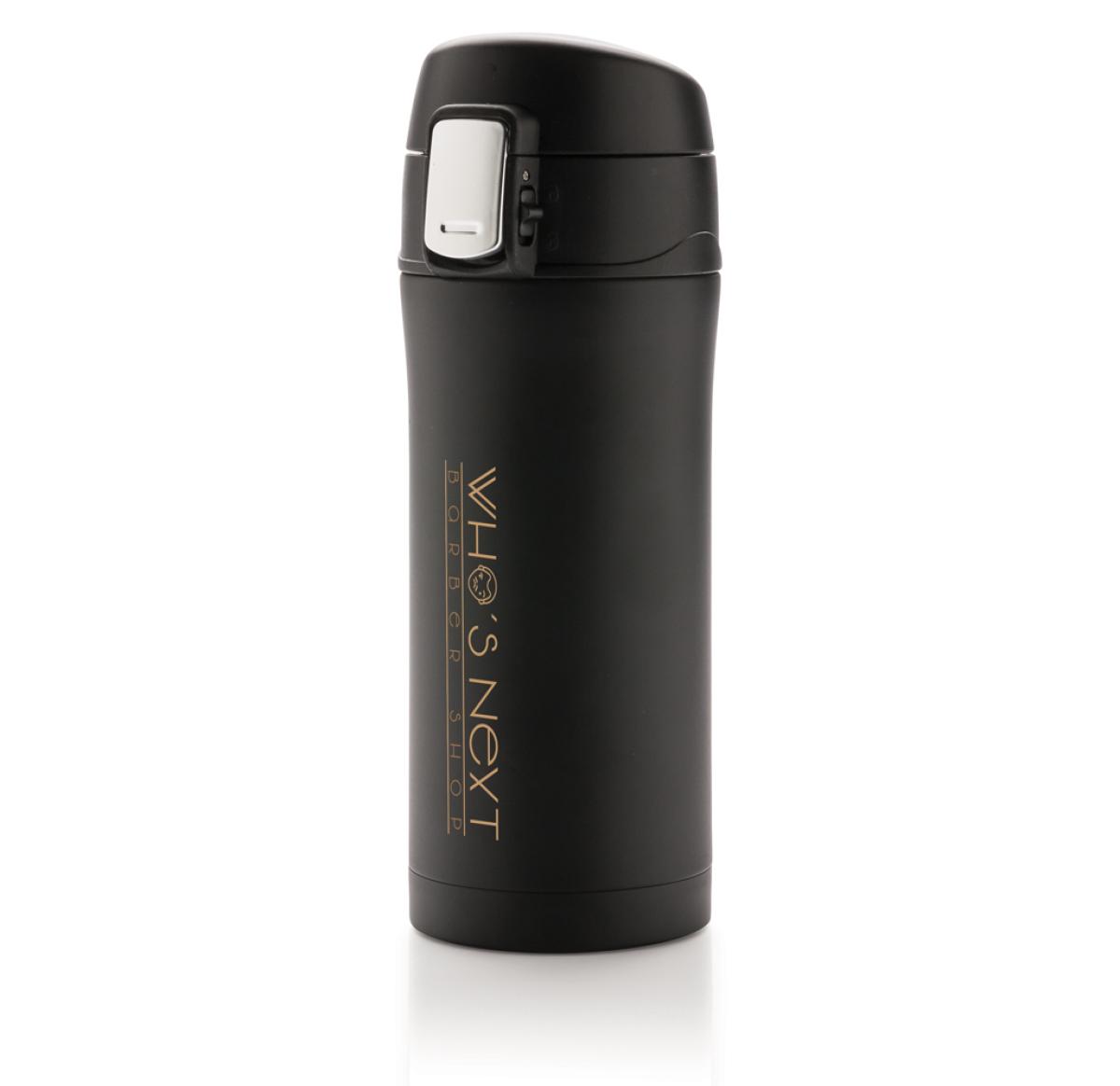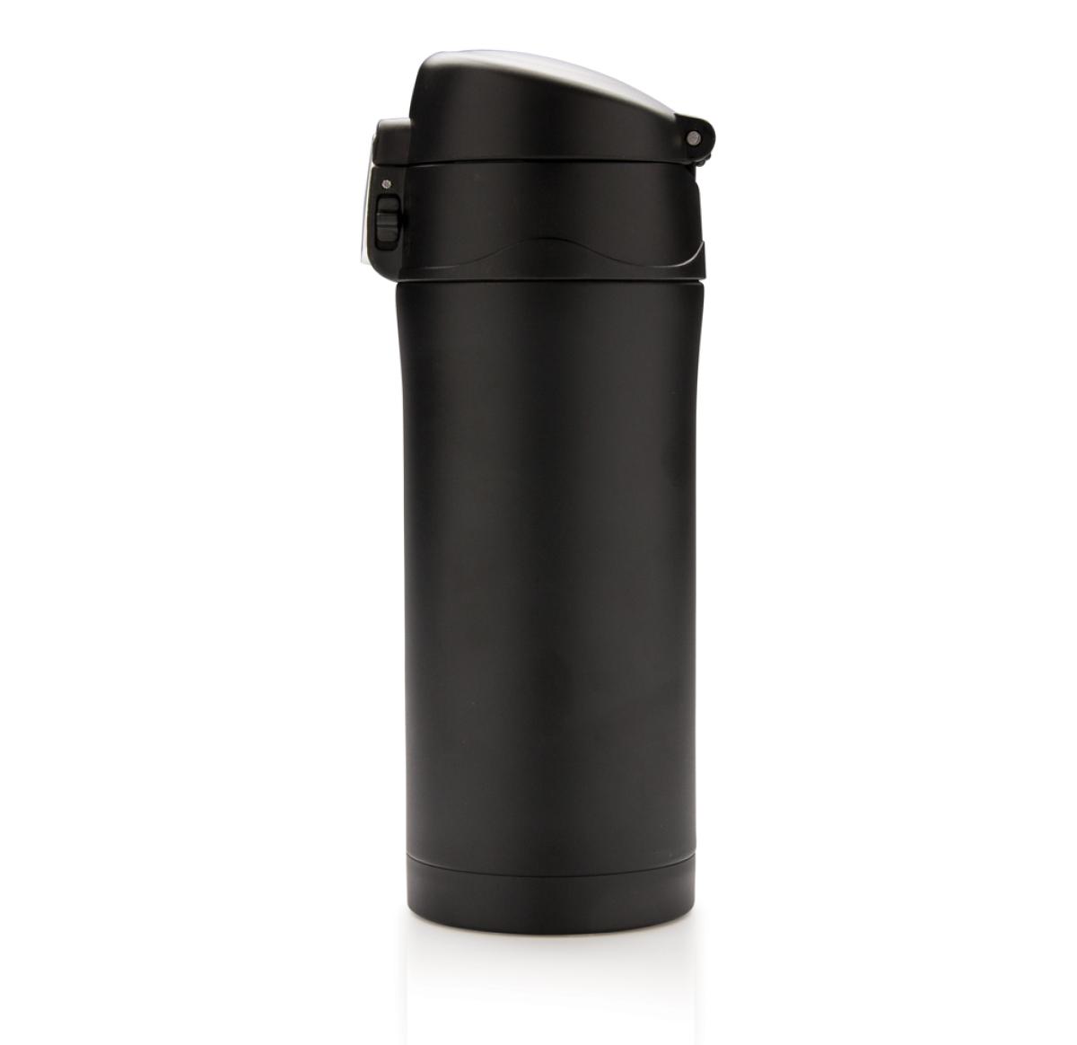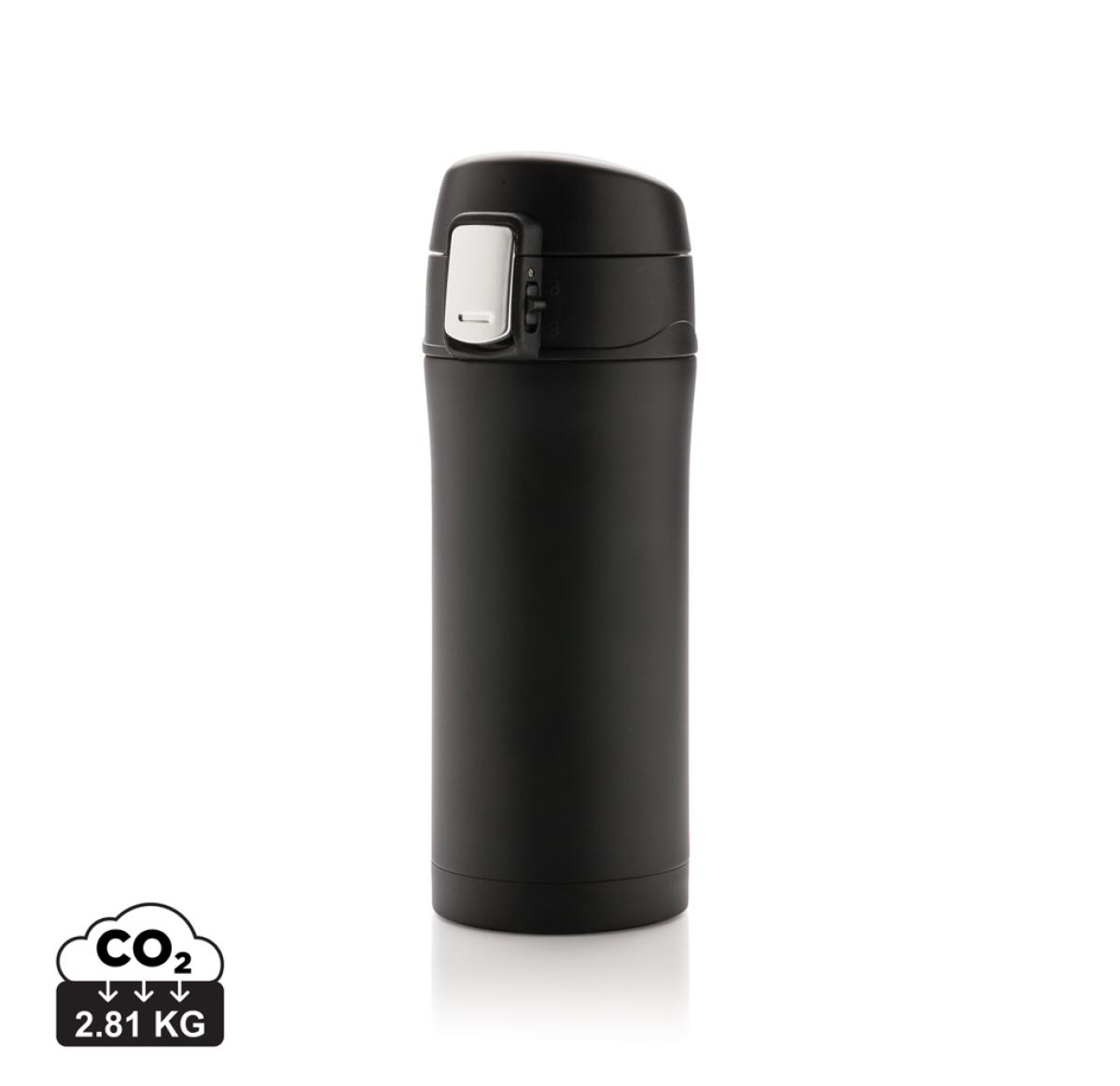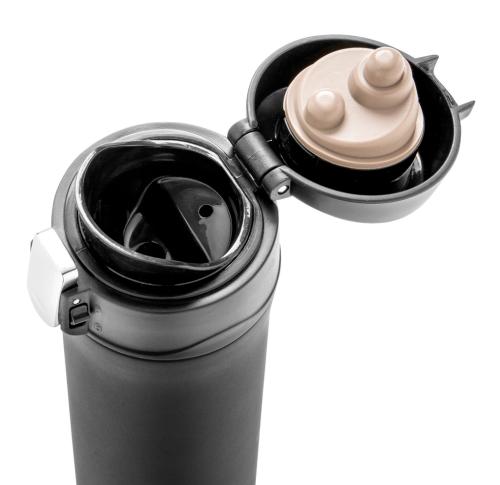 Double wall stainless steel vacuum mug that keeps your drink warm for up to 5 hours or cool up to 15 hours. The lid is lockable and therefore avoids any risk of leaking or spilling. The lid is easy to keep clean for optimal hygiene and can even be washed