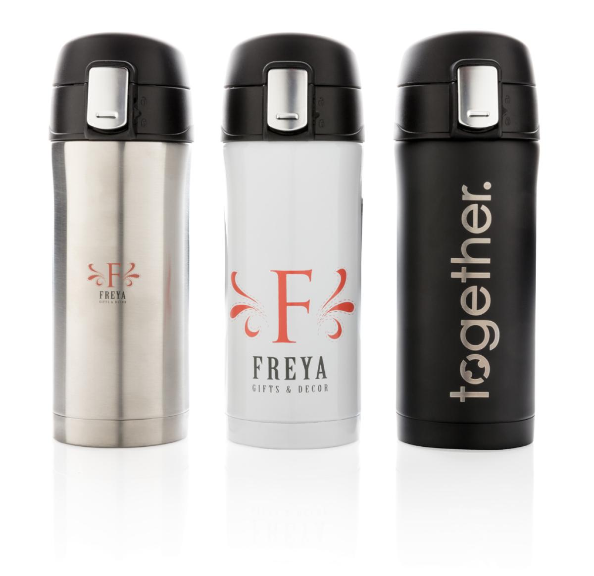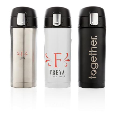 Double wall stainless steel vacuum mug that keeps your drink warm for up to 5 hours or cool up to 15 hours. The lid is lockable and therefore avoids any risk of leaking or spilling. The lid is easy to keep clean for optimal hygiene and can even be washed