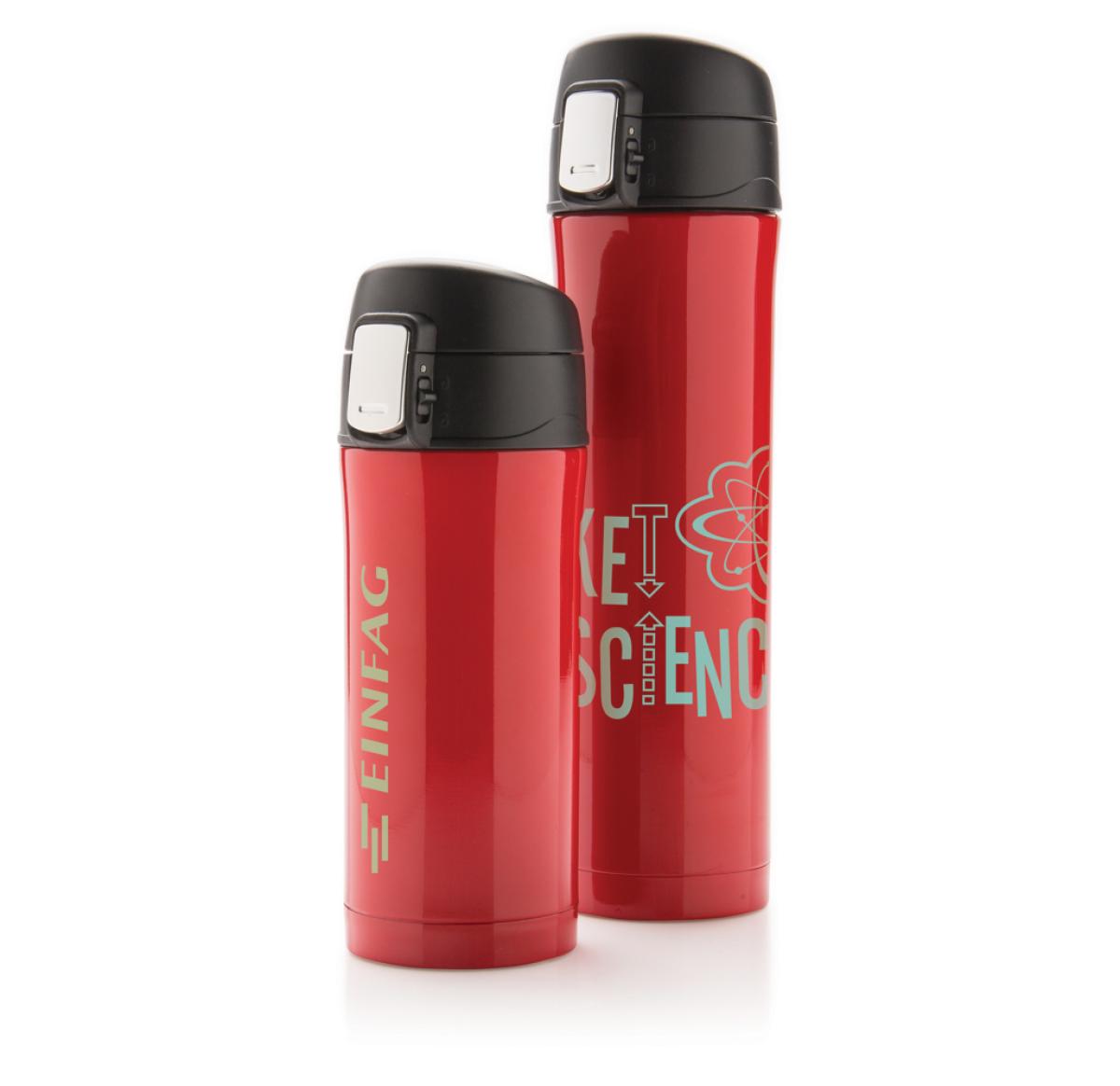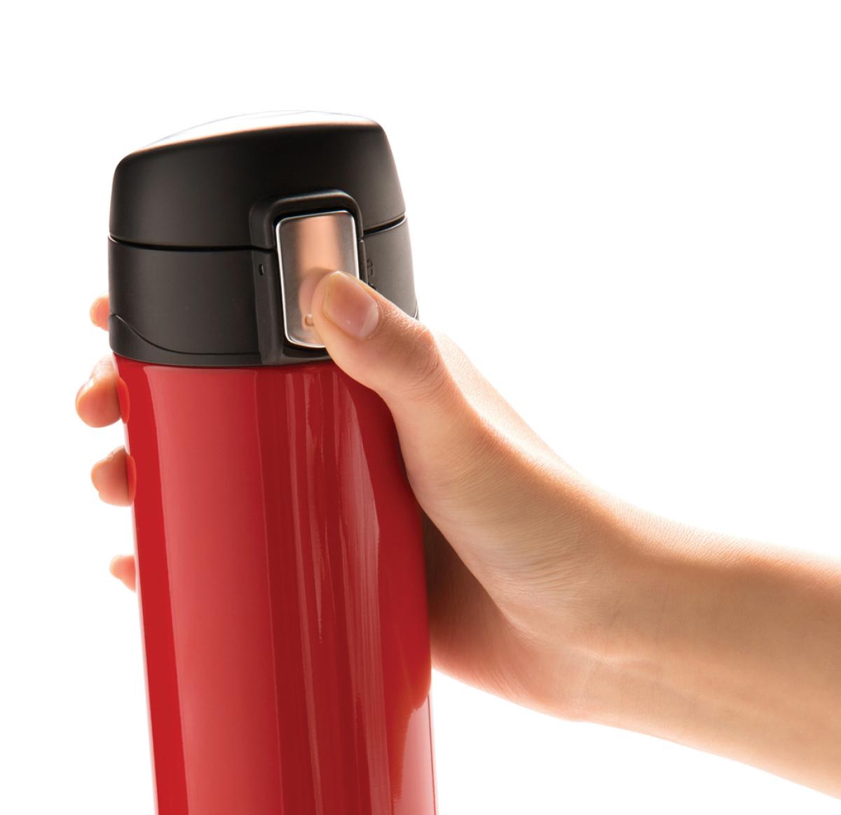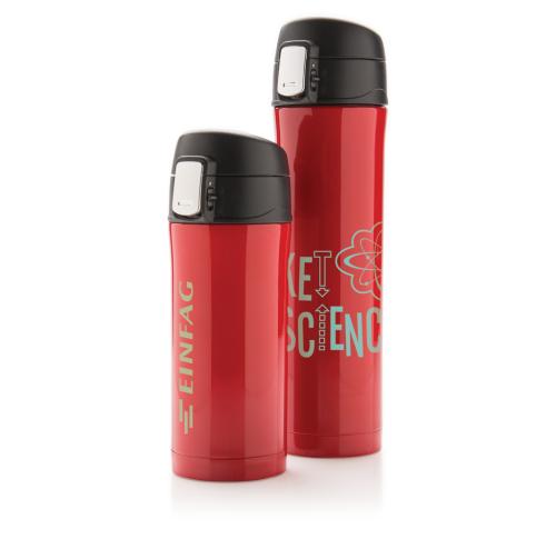 Double wall stainless steel vacuum mug that keeps your drink warm for up to 5 hours or cool up to 15 hours. The lid is lockable and therefore avoids any risk of leaking or spilling. The lid is easy to keep clean for optimal hygiene and can even be washed