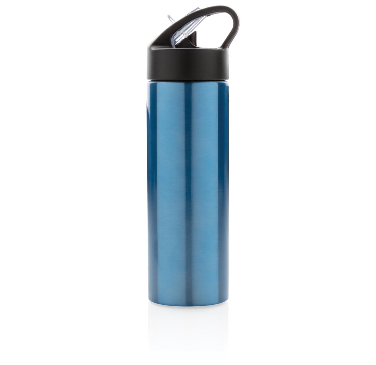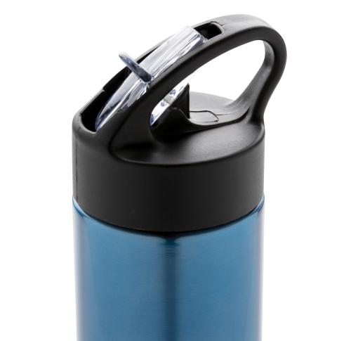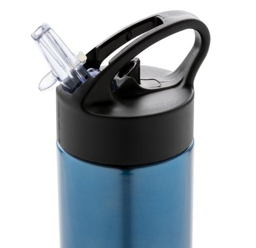 Promotional Logo Sport Bottles Stainless Steel 500ml With Straw Blue