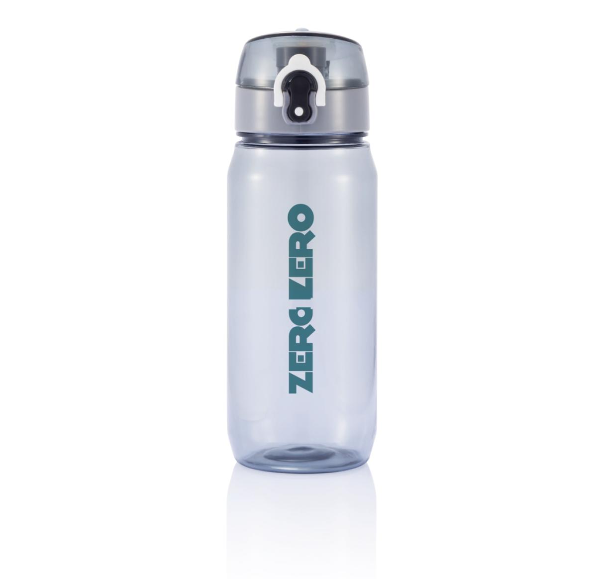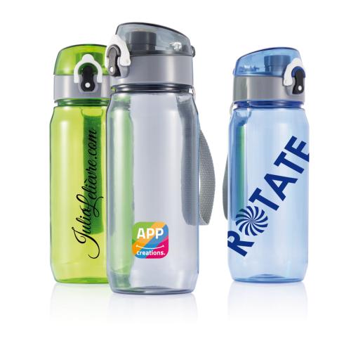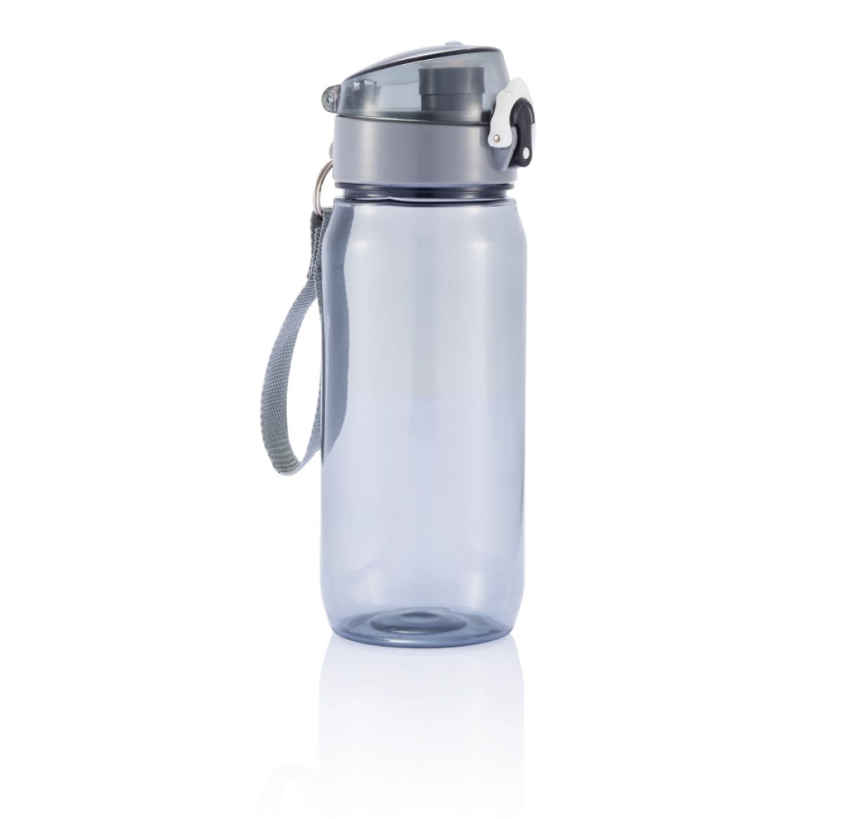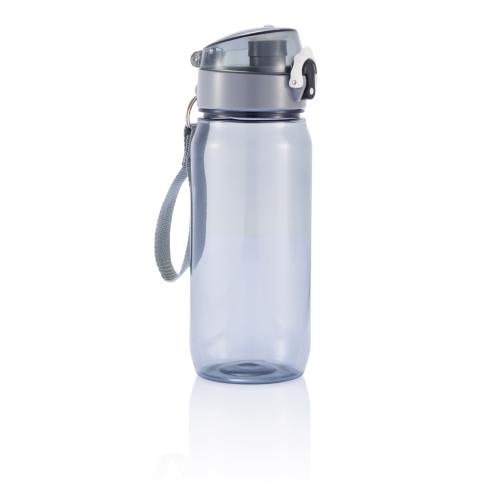 600ml Tritan bottle with lockable cap and press-to-open function. The bottle has a strap to make carrying easy.