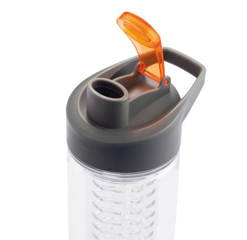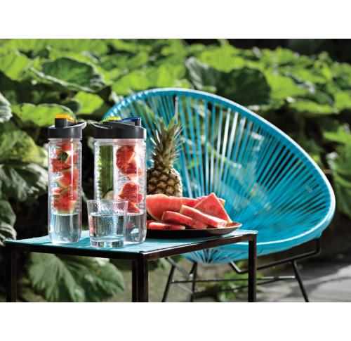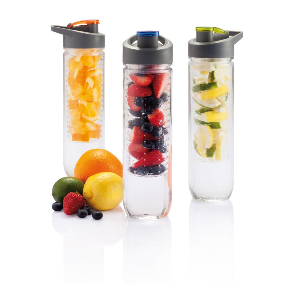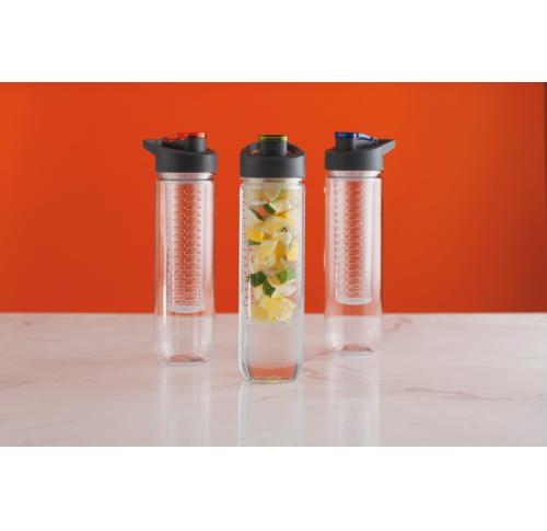 800ml Tritan bottle with fruit infuser compartment. Infuse your water with a load of vitamins and flavour by adding fresh fruits into the infuser compartment. The infuser compartment can also be used to chill your water by adding ice cubes.