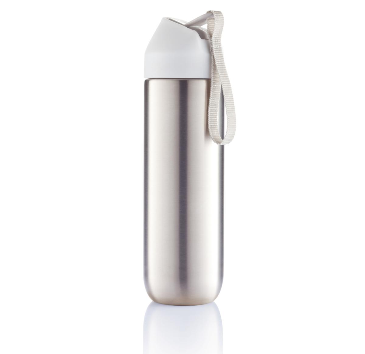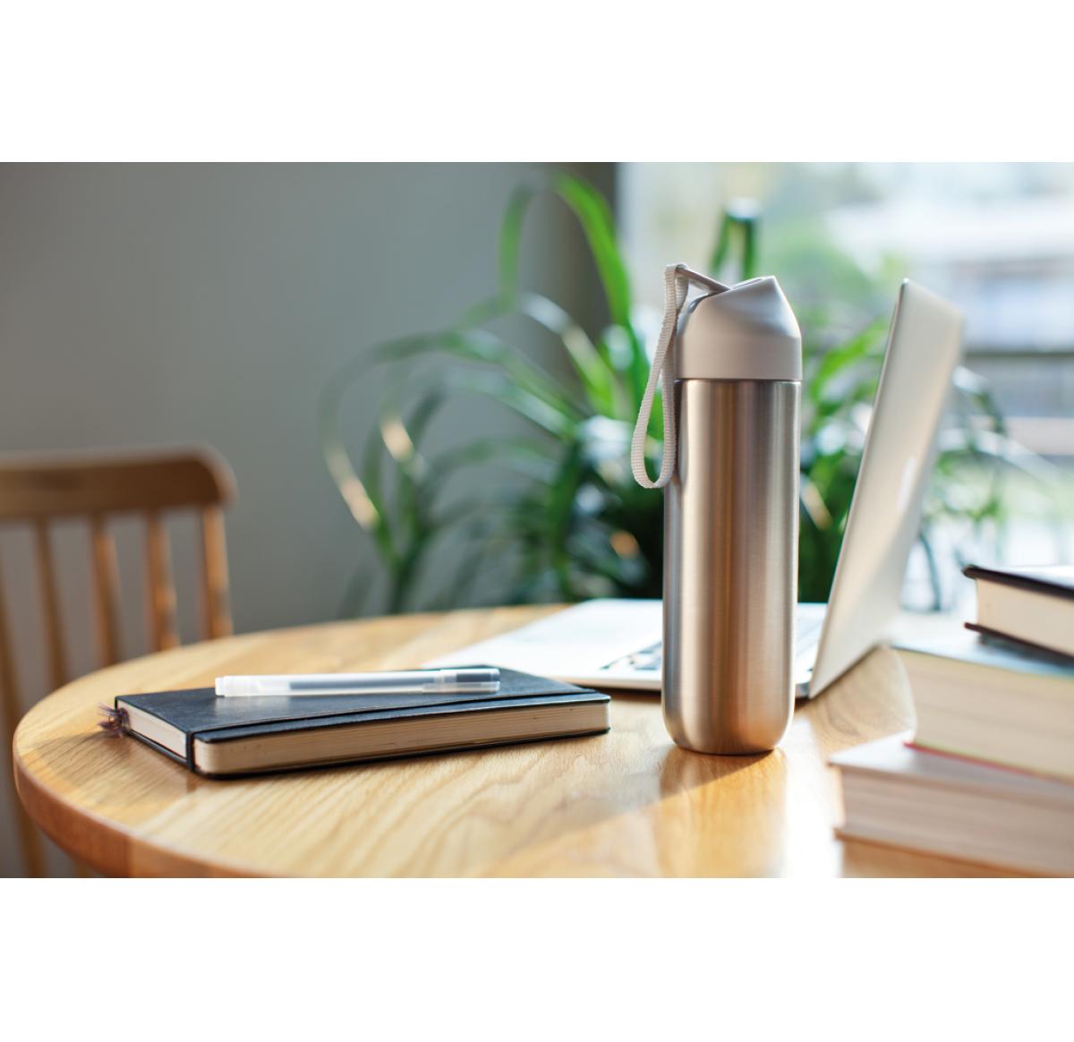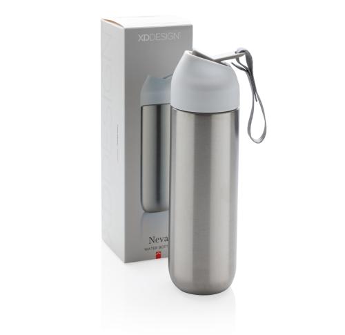 Neva is an alternative in the battle against disposable plastic water bottles. Thanks to the 500ml body made in durable 304 stainless steel, Neva can be your everyday bottle. The fabric strap allows you to carry the bottle while also serving as a quick re