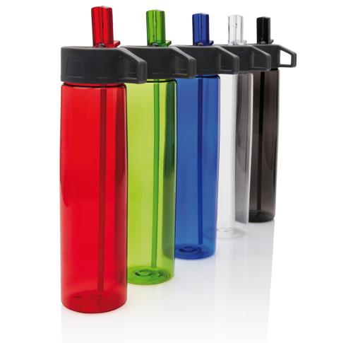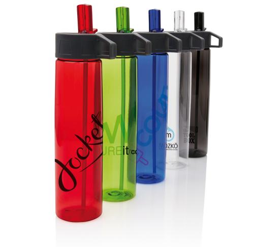 Tritan bottle with easy to use straw including carrying hook. BPA free. Capacity: 750ml.