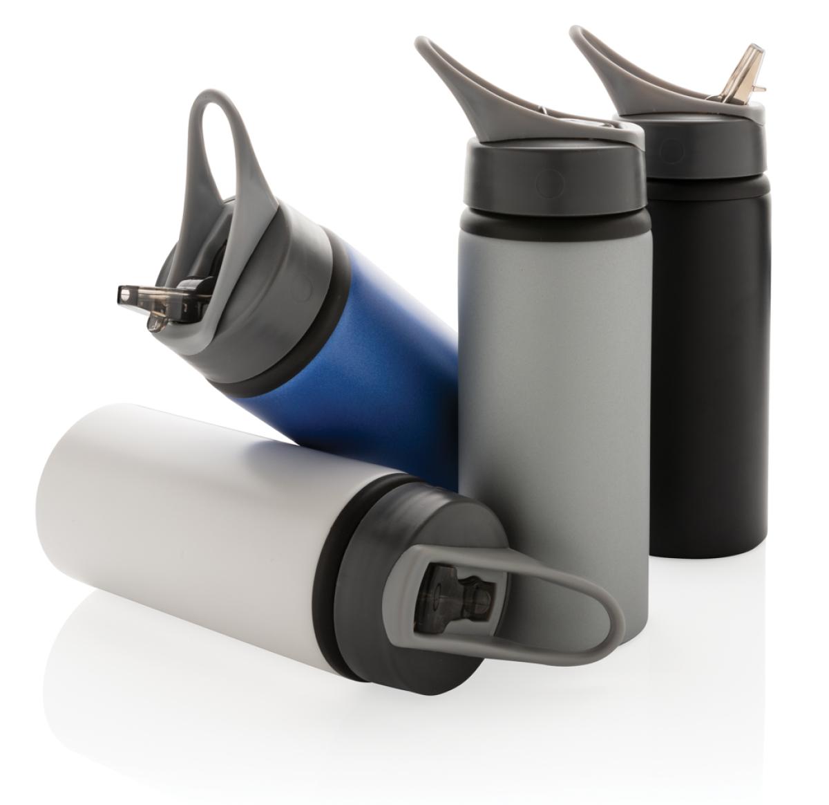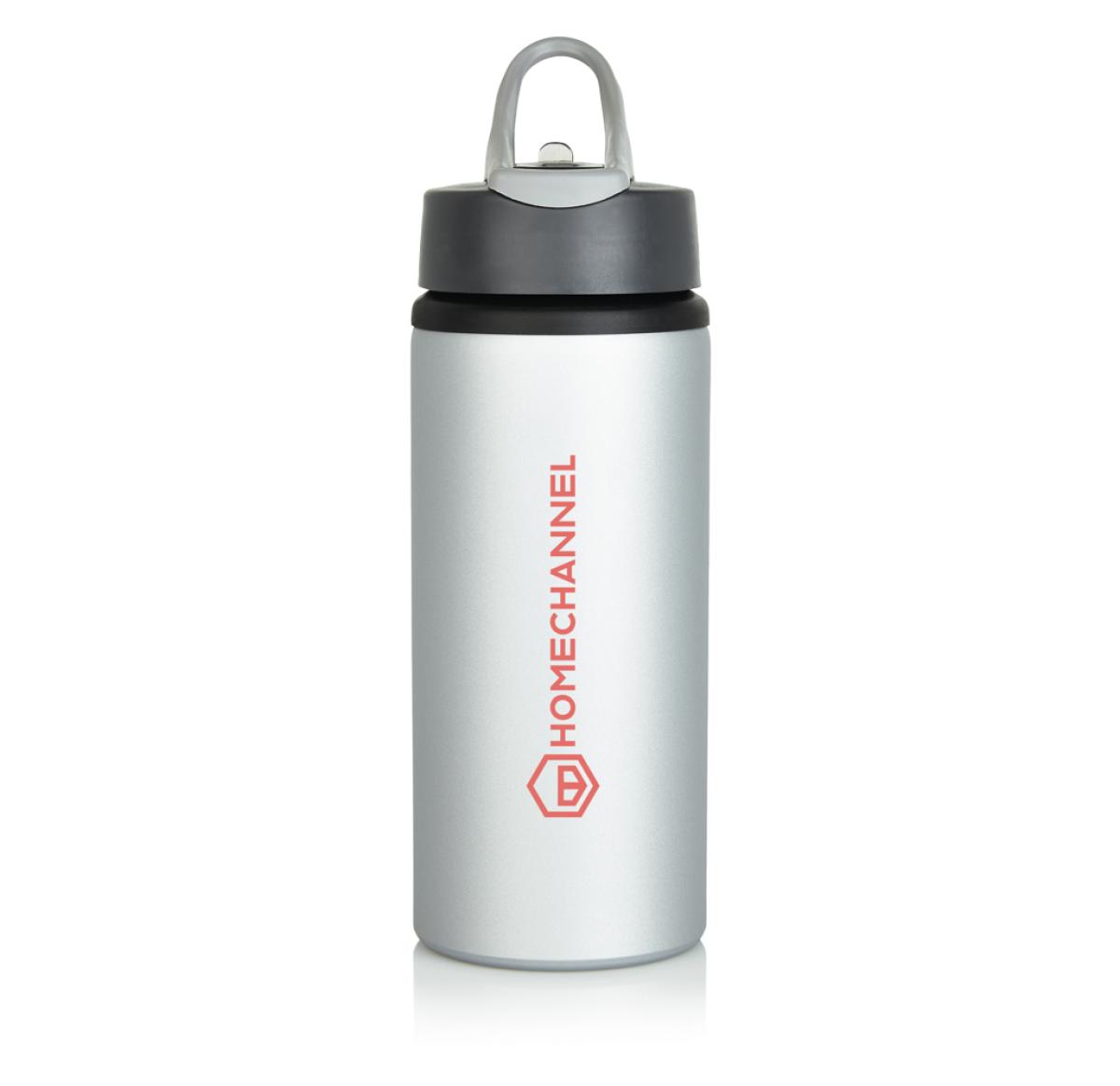 Branded Aluminium Metal Sports Bottles Silver Flip Lid