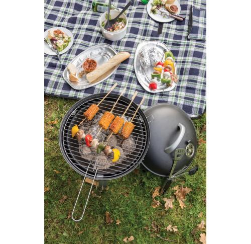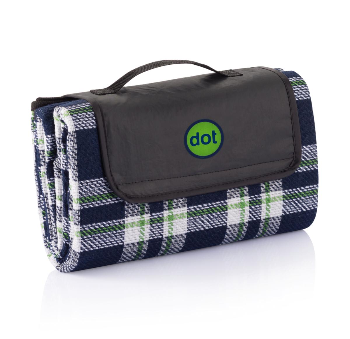 Traditional styled blanket, size 130x145cm, top woven acrylic 120gsm coloured square pattern, back of blanket is waterproof PVC 110gsm.