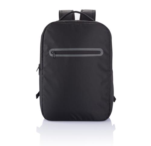 300D polyester laptop backpack with 1 main compartment which has a separate tablet pocket and an organiser. PVC free.