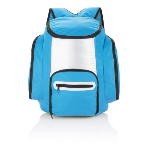600D cooler backpack with silver lined insulation inside to keep all your food and beverages cold. On the front there’s an additional zipped pocket for storing your other belongings.