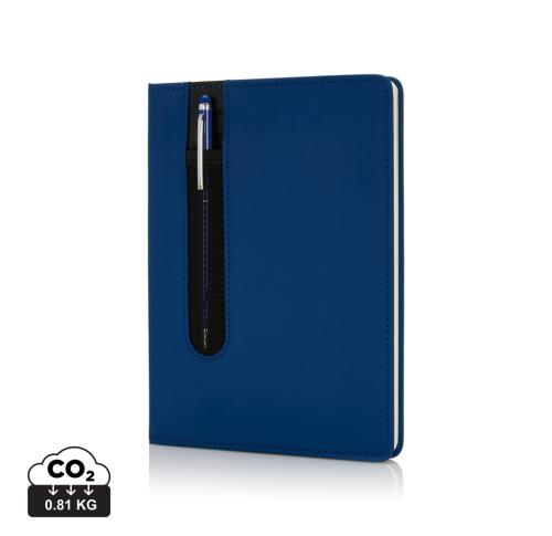 The perfect combo: A5 PU notebook with pen sleeve and a metal stylus pen. Packed in giftbox. 160 pages of 80g/m2 paper Inside.