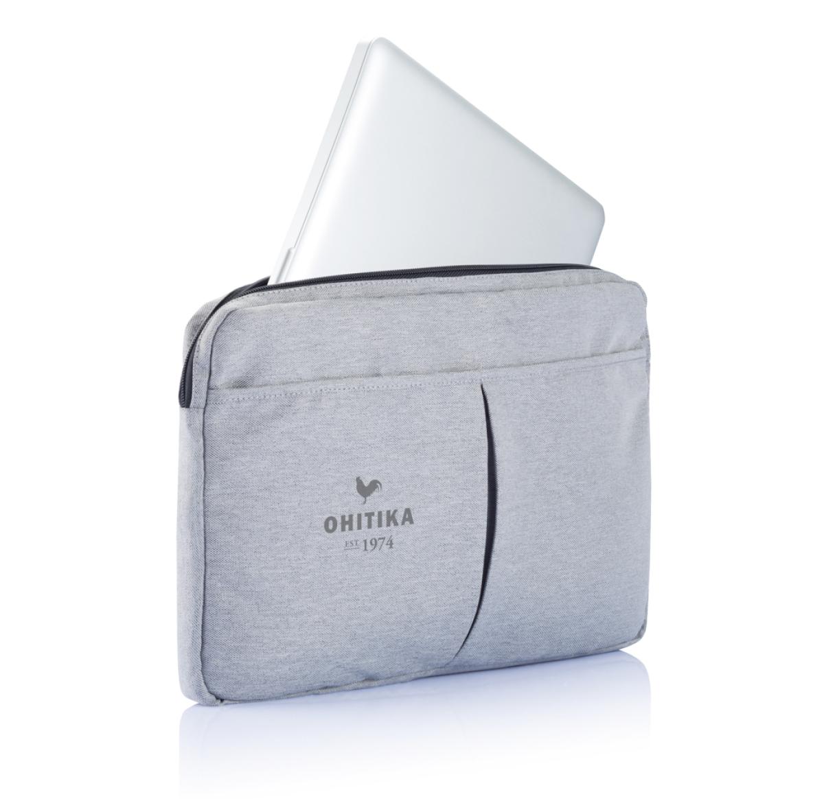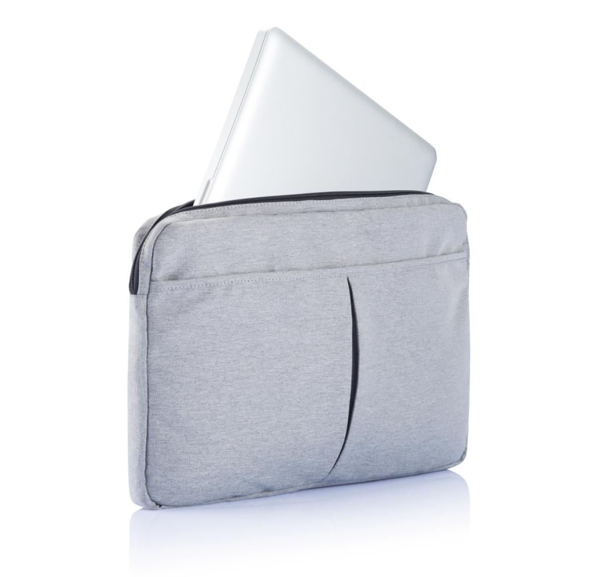 600D polyester sleeve which not only carries your laptop but also has space to conveniently store your charger, cables, keys, etc. PVC free.