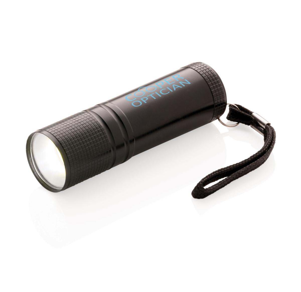 Super bright pocket sized COB torch. This COB torch is much brighter than regular LED torches and consumes less energy so it can be used up to 30% longer on the same battery. With strong aluminium body and carrying strap. Including 3x AAA batteries for di