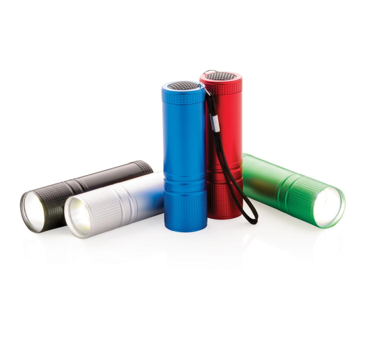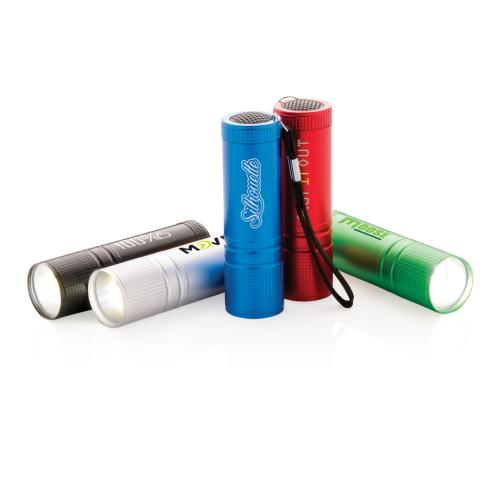 Super bright pocket sized COB torch. This COB torch is much brighter than regular LED torches and consumes less energy so it can be used up to 30% longer on the same battery. With strong aluminium body and carrying strap. Including 3x AAA batteries for di