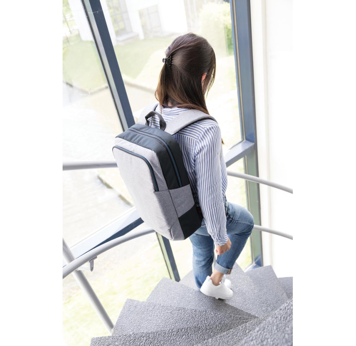 Unique designed 15” laptop backpack with one large main compartment for your laptop and one front compartment. Innovative handsfree suction system on the straps will hold your phone while commuting. Connect your powerbank easily to the integrated USB char