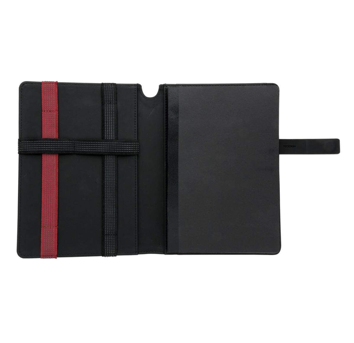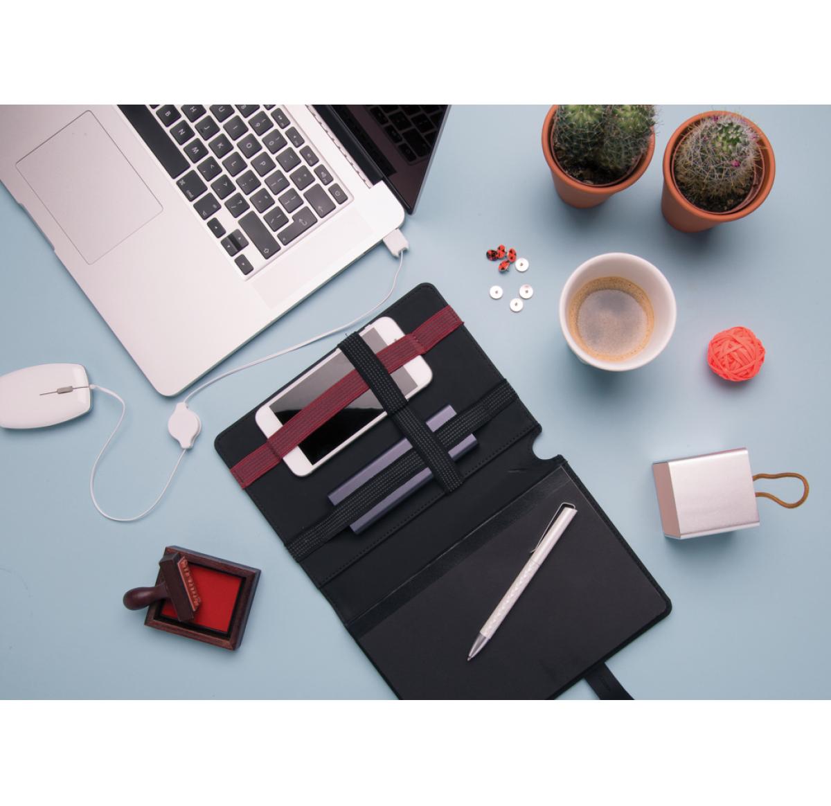 Refillable A5 notebook sleeve with intelligent organisation system for gadgets inside. Store your pen into the spine. Rubberised woven elastics can hold up to 5.8 inch gadgets for instance iphone 7 Plus or galaxy S8. 128 pages of cream coloured 80 gsm pap