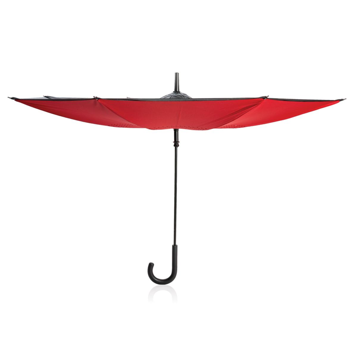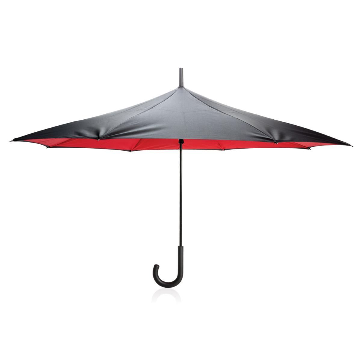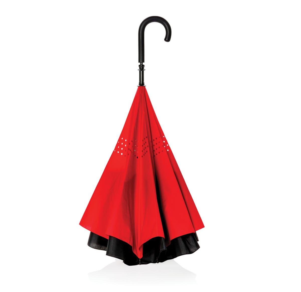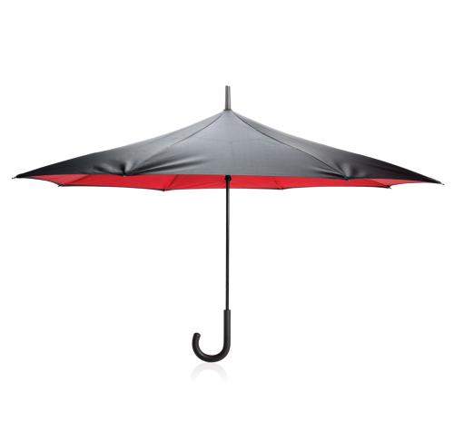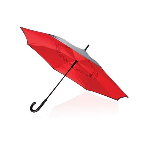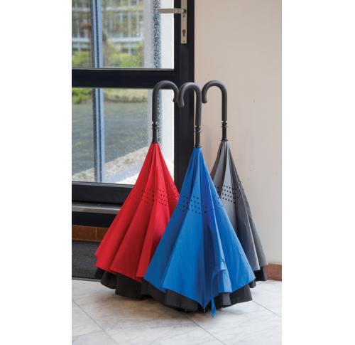 23’’ reversible umbrella in 190T pongee fabric with manual opening and closing. Full fibreglass ribs and frame with windproof system.