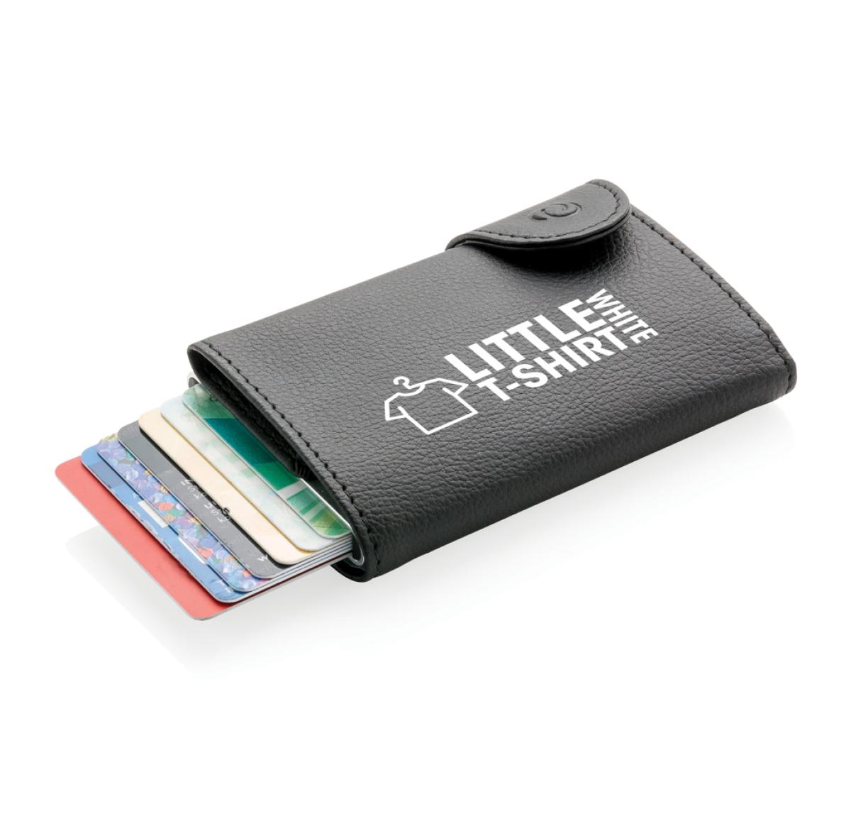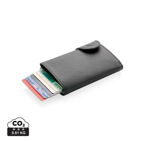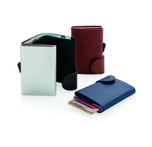 This solid aluminium card holder protects your most important cards against electronic pickpocketing. No more broken or bent cards. It can hold up to 7 cards or 5 embossed cards. The side button slider will push the cards up gradually. The wallet can hold