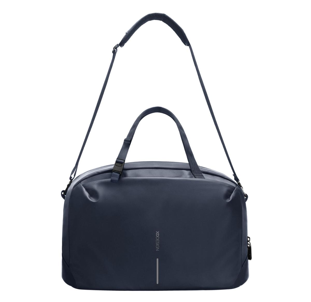 Discover the Urban Water Resistant Weekend Duffle – the ultimate travel companion. Engineered with an XD self-locking metal zipper puller, this duffle ensures your belongings remain secure. Its lightweight yet durable construction, crafted from water-resistant PU and featuring a water-resistant zipper, keeps your items dry. This duffle offers easy access to your essentials, with a spacious compartment for up to a 16-inch laptop and an internal mesh pocket. The addition of front and rear pockets brings convenience to your adventures. Aware™ traceable recycled polyester lining guarantees genuine recycled fabric, with 63% recycled content. Registered design®.