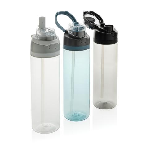 Introducing the Omni Sip lightweight RPET Water Bottle. You deserve versatility in your hydration routine, and that's why we created the Omni Sip. This innovative bottle lets you choose how you drink. Sip through the built-in straw while holding it upright, or tilt it back to enjoy a sip from the wide-mouth opening. Ready for action at a moment's notice, just push the button to flip the top open, and push it back down to securely lock it shut, keeping out dirt and germs. 800ml content and made from RCS certified recycled PET. The Omni Sip is entirely leak-proof. Packed in FSC giftbox. Total recycled content: 47% based on total item weight.