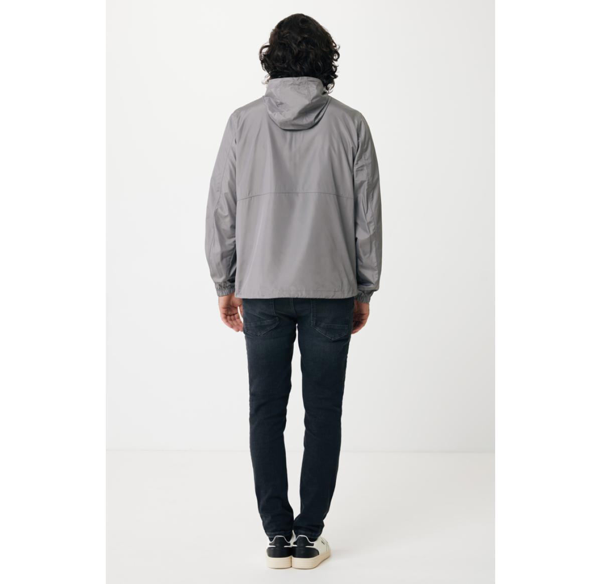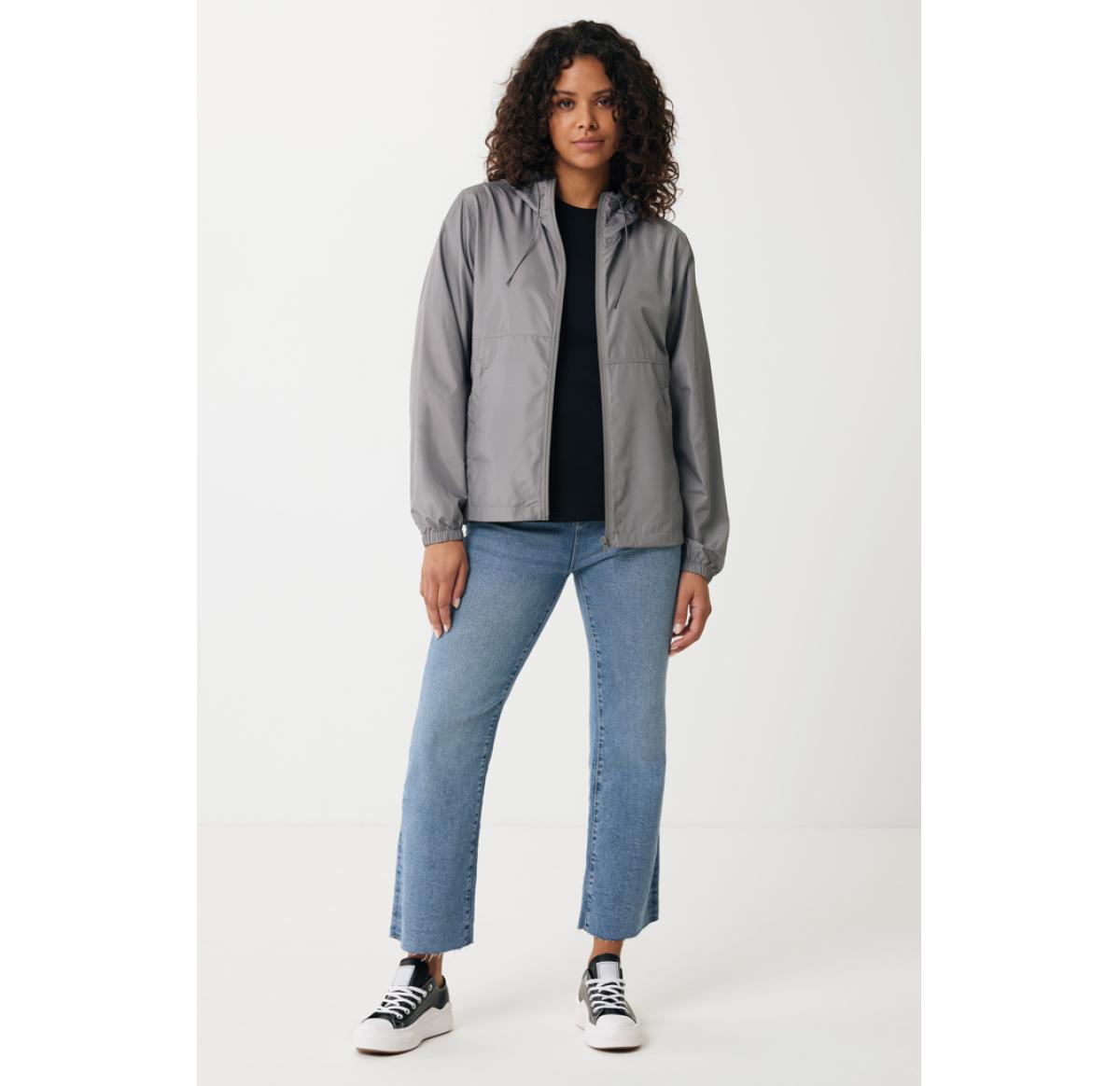 Unisex medium fit lightweight jacket made from 100% post-consumer recycled polyester in 70 G/M². The jacket has an adjustable hood with elastic string, a reversed zipper at the front and seam welt pockets. All zippers have extra zip pullers in matching colour for a refined look. The cuffs are fully elasticated. The back of the jacket is slightly longer and curved and the bottom hem has an elastic string and stoppers for better protection. Fluorine/PFAS free water repellent impregnation. The use of genuine recycled fabric materials and environmental impact claims are guaranteed, by using the AWARE™ disruptive physical tracer and blockchain technology. By scanning the QR code, you will gain access to a dedicated digital passport. 2% of proceeds of each sold product will be donated to Water.org. This product is OEKO-TEX® STANDARD 100 certified.
