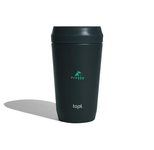 Meet the Topl Cup, your perfect fit for barista size 12oz (354ml) for your favorite tall brew. Made with RCS certified recycled materials and vacuum insulated, it keeps drinks at the perfect temperature. Its patented 360° sip design and transparent lid offer practicality and style for your daily adventures, whether you’re strolling the park or commuting to work. Made with 64% recycled material
