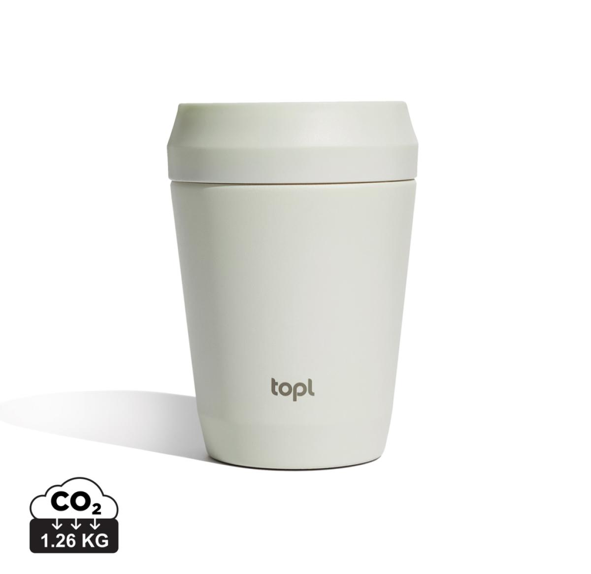 Meet the Topl Cup, your perfect fit for barista size 8oz (236ml) for your favorite small brew. Made with RCS certified recycled materials and vacuum insulated, it keeps drinks at the perfect temperature. Its patented 360° sip design and transparent lid offer practicality and style for your daily adventures, whether you’re strolling the park or commuting to work. Made with 57% recycled material.