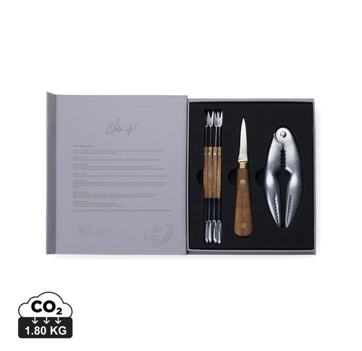 Dive into the exquisite world of seafood with the Story of Seafood set, elegantly packaged in a FSC® gift box that resembles a classic book. This carefully curated set includes an oyster knife, a shell cracker, and four seafood forks, all crafted with precision from stainless steel and FSC® certified ash wood. The unique packaging not only protects your tools but also tells a captivating story of seafood, making it an ideal gift for any seafood lover.