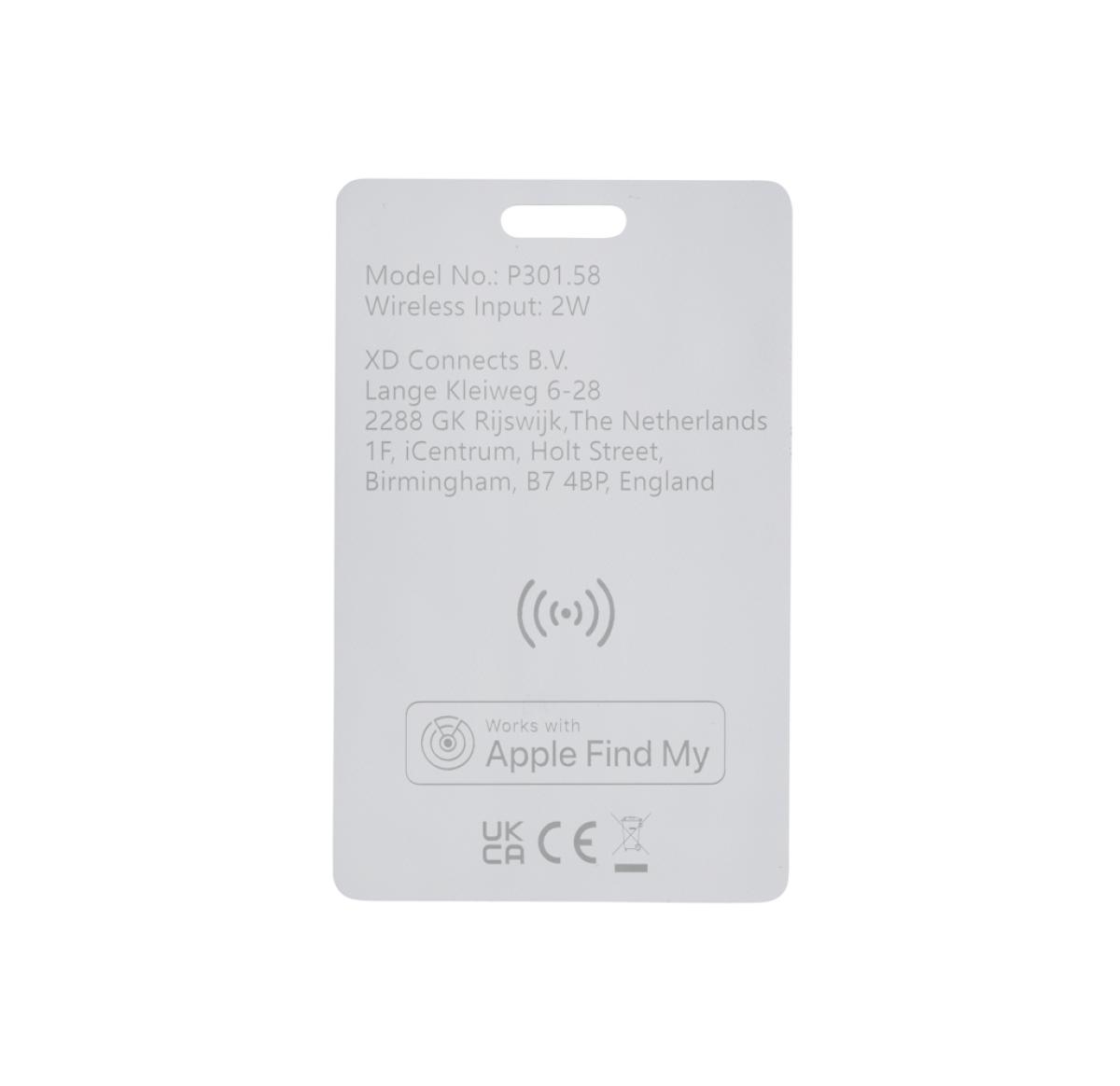 Never lose your wallet again with the ultra-thin Findit card, featuring integrated Find My technology that connects seamlessly with Apple’s Find My app. With Findit, you'll get an instant notification if you leave your wallet behind. Even if your wallet is completely lost, you can easily track it anywhere in the world using Apple’s Find My network. Once you're close by, you can activate a sound to find its exact location. Findit is IPX5 wateproof and comes with a long-lasting rechargeable battery, making it incredibly convenient. Simply place the 2.3mm card on a wireless charger, and in just 1 hour, it will be fully charged and ready to go for up to 6 months—no need to worry about replacing batteries. Findit also has a lower impact by being made from RCS recycled ABS, with a total recycled content of 40% based on total item weight. The RCS certification guarantees a completely certified supply chain of recycled materials, and Findit comes packaged in FSC® mix gift packaging.