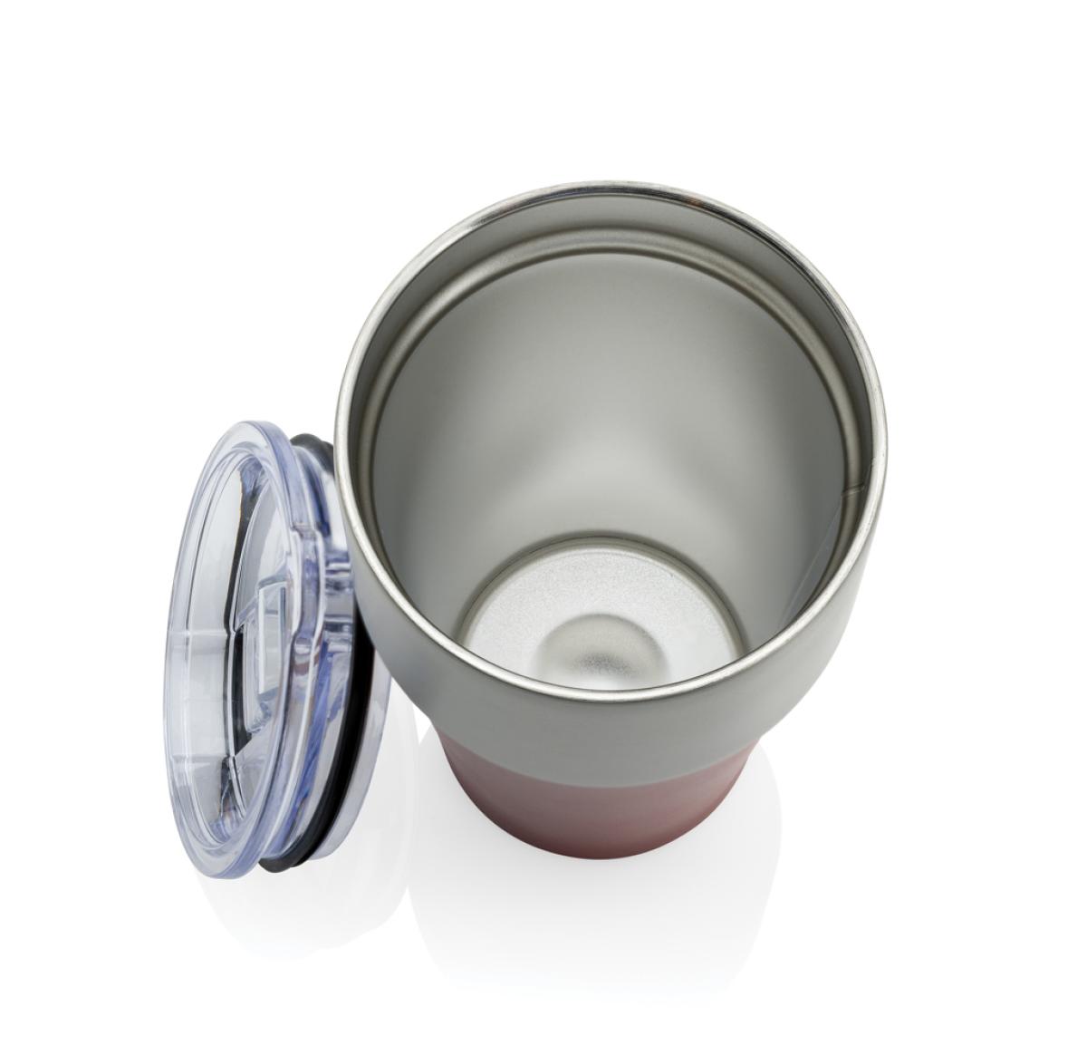 This 500ml tumbler features a distinctive double-coloured exterior with a stylish half-and-half design. The double-wall recycled stainless steel vacuum construction keeps beverages chilled for up to 15 hours or warm for up to 5 hours. The Fluid Tumbler fits most standard car cup holders, making it perfect for on-the-go use. Made with RCS (Recycled Claim Standard) certified recycled materials, ensuring a completely certified supply chain of the recycled materials. Spill proof & BPA free. Includes FSC®certified kraft tube gift packaging. Total recycled content: 81% based on total item weight.