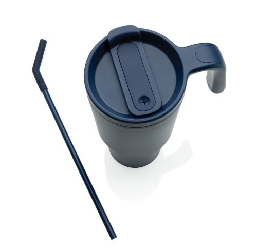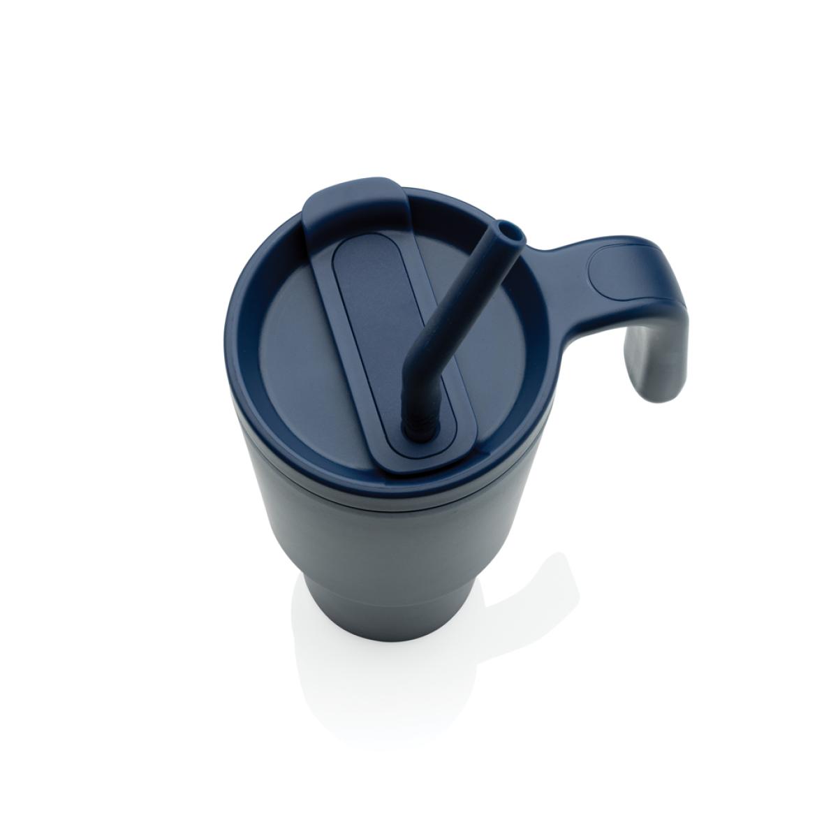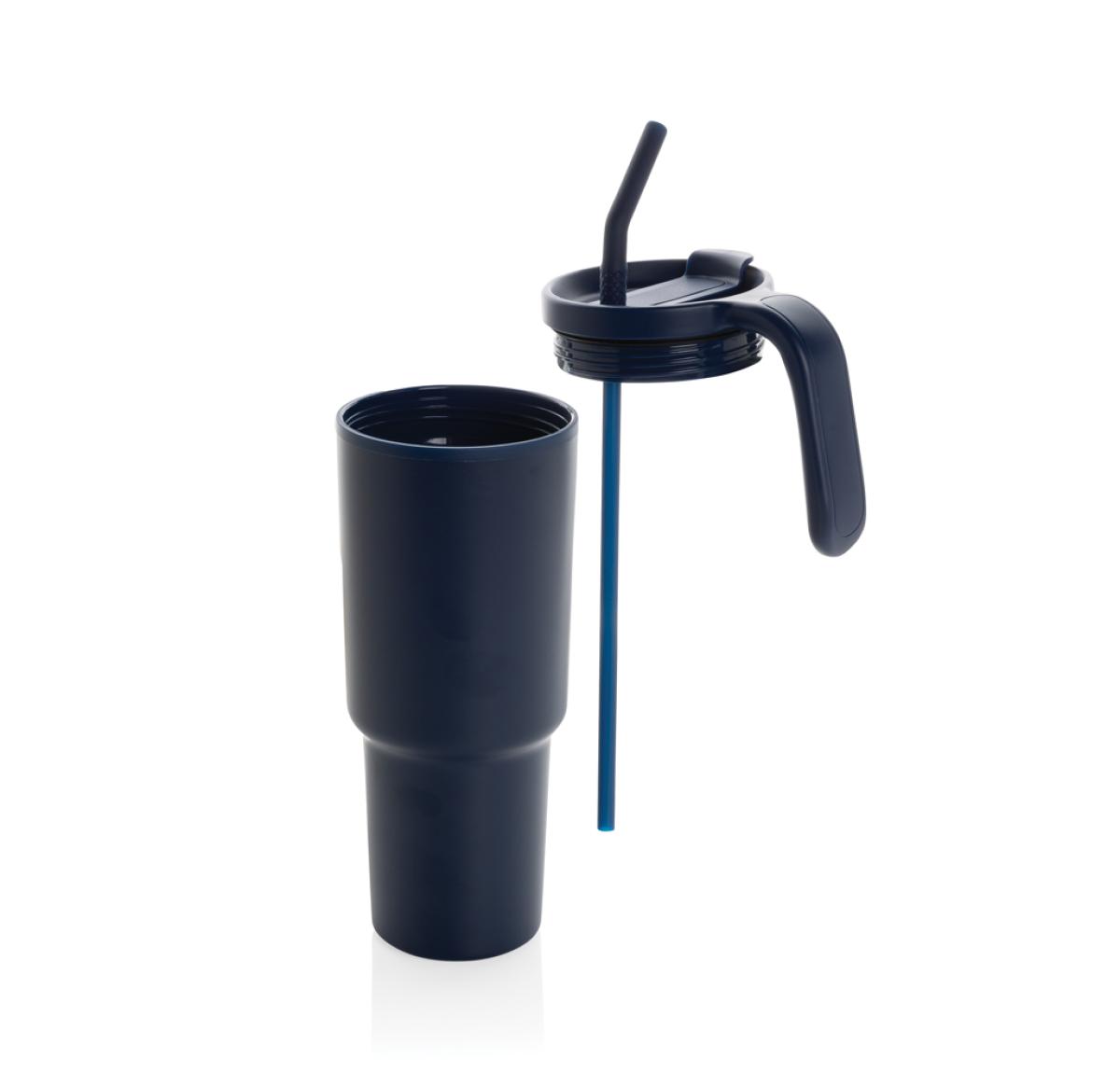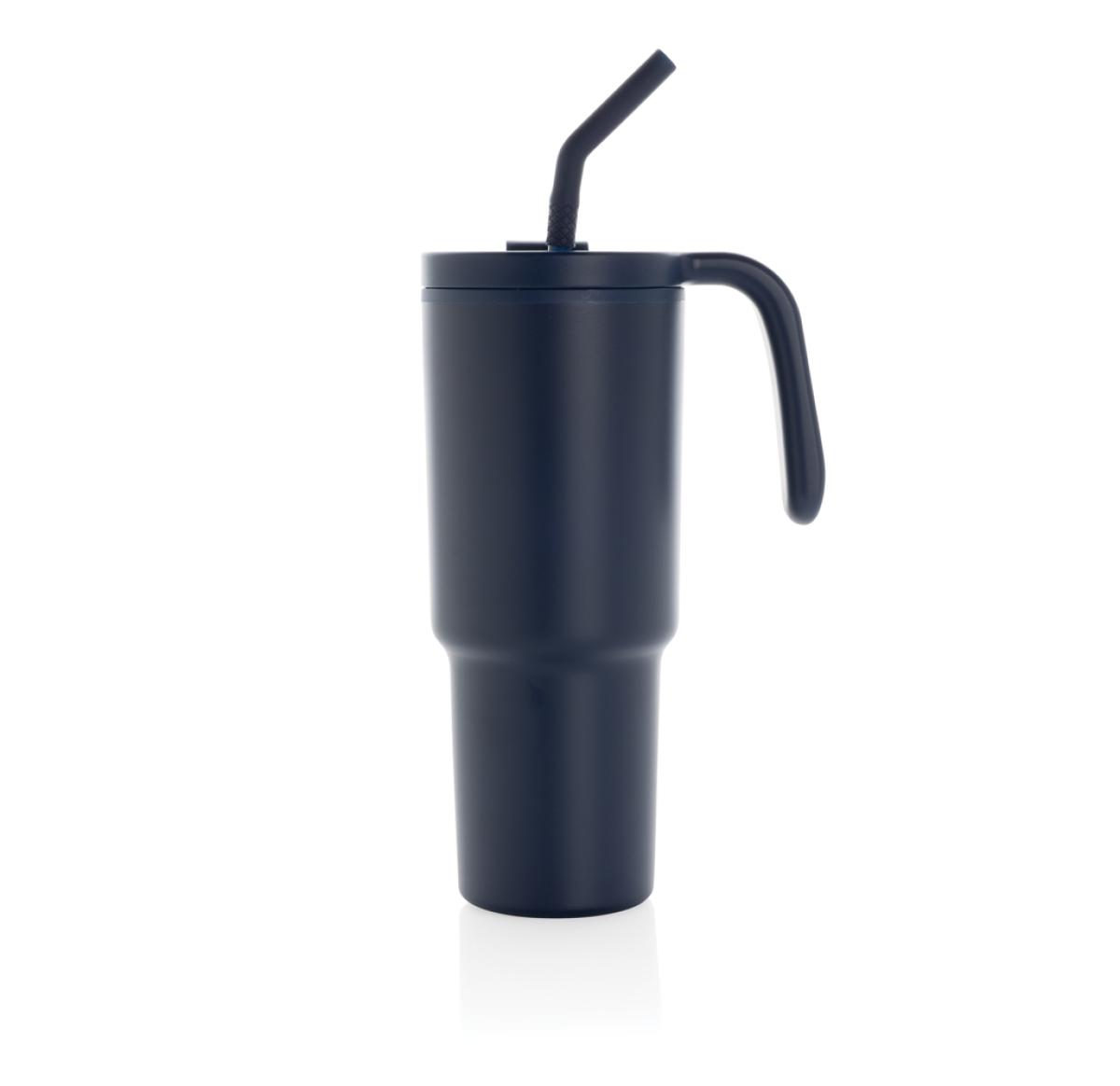 The most popular mug now suitable for perfect 360 round body printing. A 900ml tumbler designed for eco-friendly hydration, made with recycled materials. Whether you're working, exercising, or travelling, this tumbler is your perfect companion. The innovative lid features a rotating cap with three positions: a spill-resistant straw opening, a sipping spout, and a fully sealed lid. The ergonomic handle with comfort-grip inserts ensures easy carrying, and the slim base fits most car cup holders. Hand wash only. BPA-free. Capacity: 900ml. Includes FSC®-certified kraft gift packaging. Total recycled content: 36% based on total item weight.