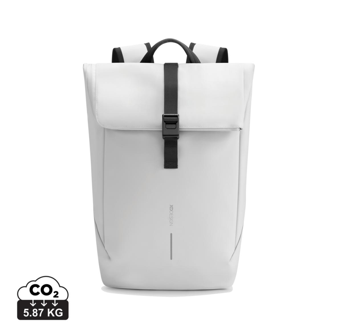 Experience versatile, all weather design and enhanced security with Urban backpack. Its unique L shaped wide opening main compartment,complete with an expandable section and ample space for a 16 inch laptop, offers effortless access to your essentials. The anti theft design, coupledwith a self locking metal zipper puller, ensures that your belongings remain safe. The addition of a rear pocket and a dedicated water bottle pocketbrings convenience to your daily adventures, making it the ideal companion for urban explorer. This backpack is not only water repellent, it's durable and stylish. Crafted with Aware ™traceable recycled polyester and finished with a soft touch PU coating, perfect for any occasion. 17% recycledcontent. Registered design®