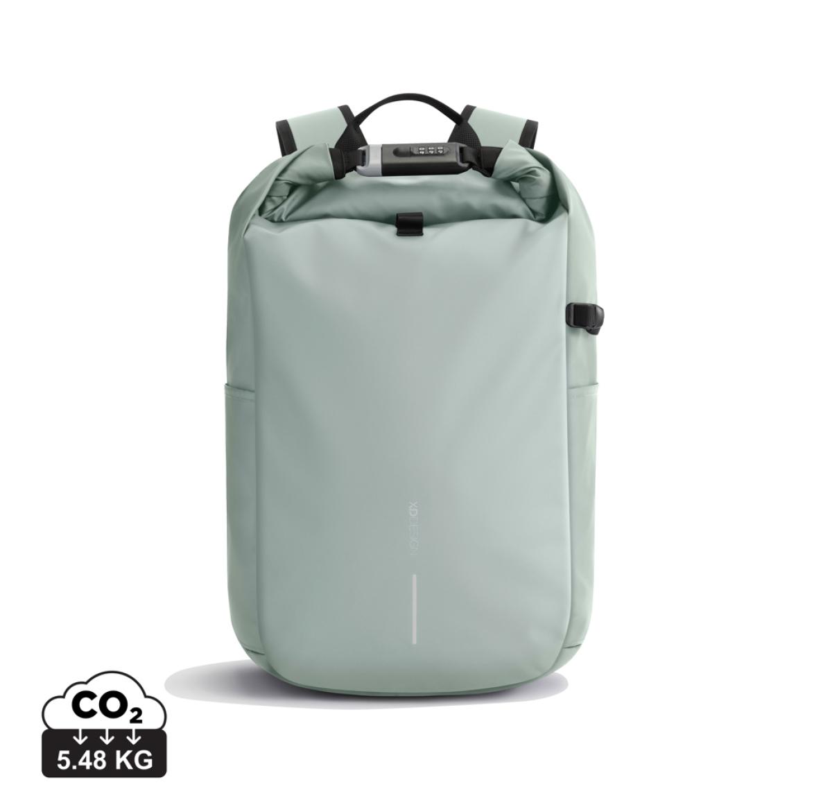 The new Urban anti-theft backpack stands as the ideal travel companion, ensuring security and convenience. By rolling up the main compartment and securing it with the reinforced combination lock, the backpack offers complete closure, which can also be used to lock the bag around a fixed object. Hidden pockets on the back. The bag is equipped with a side water bottle pocket. Internally, padded compartments cater to a 16” laptop and mesh pockets provide organisation for your essentials. Crafted with Aware™ traceable recycled polyester and finished with a soft touch water resistant PU coating. 11% recycled content. Registered design®