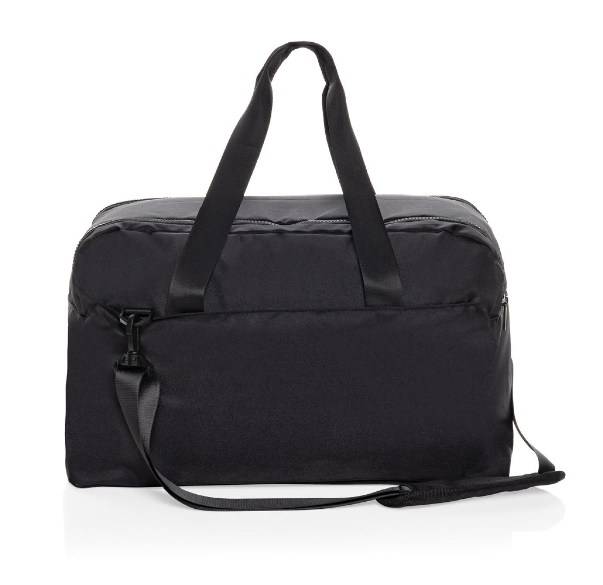 Your standard business Swiss Peak weekend bag with 15"6 inch laptop compartment for all your short business trips. Made with Aware™ RPET 300D/150D. Main compartment has additional pockets and an zipper pocket on the inside. Rigid zippers