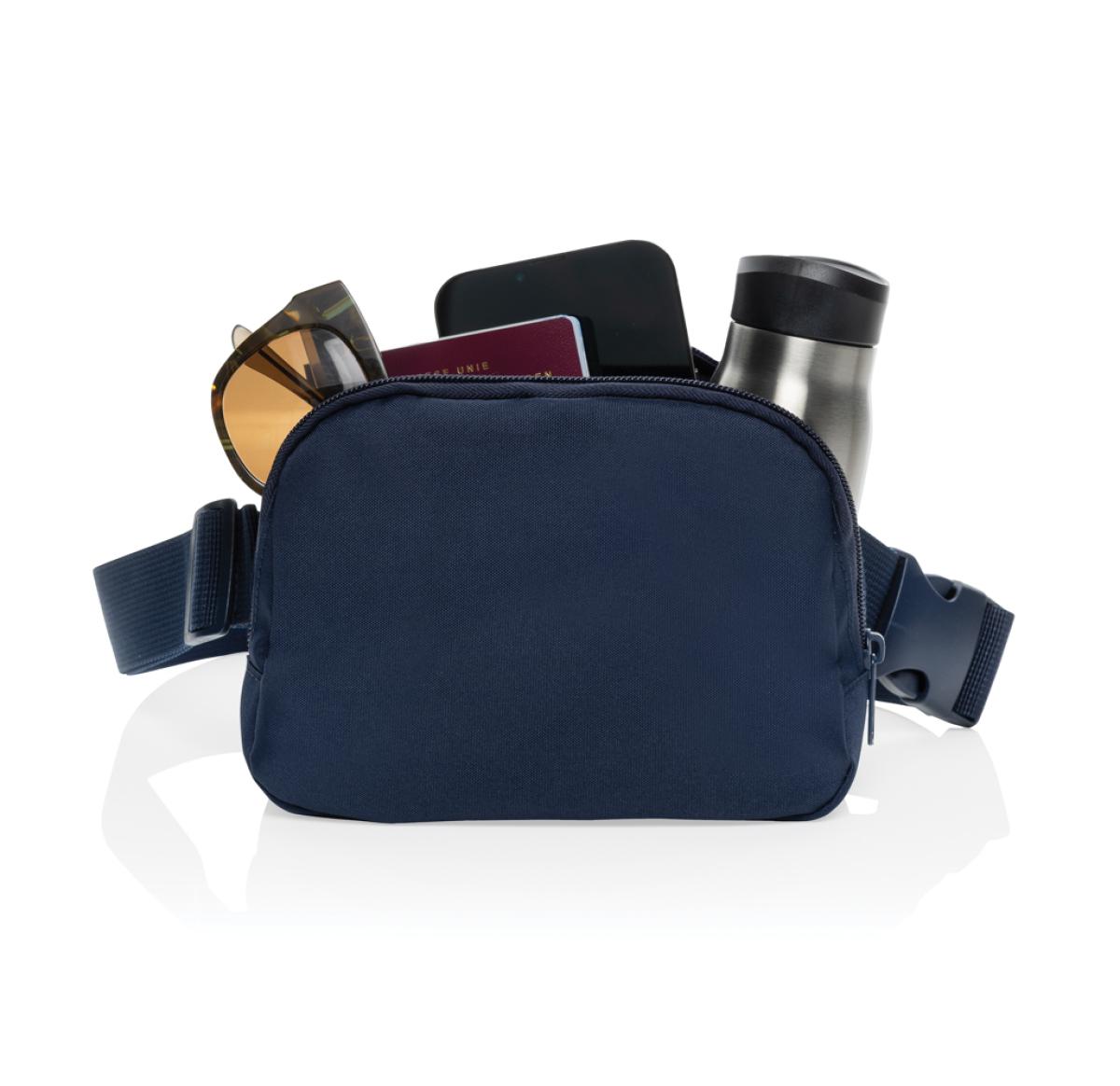 The Aero Aware™ RPET Everyday Sling Bag combines style and functionality for all your on-the-go needs. Made from 100% rPET, this sling bag features an adjustable belt/shoulder strap (100cm) with a 4cm webbing width for a comfortable fit. It offers a back zipper pocket and a main compartment with a zipper for secure storage. Designed with a zipper towards your body, it keeps your essentials safe and hidden. Perfect for travel, city outings, or festivals, the sling bag can be worn crossbody or horizontally like a belt. Made with recycled polyester embedded with the AWARE™ tracer. 2% of proceeds of each product sold with AWARE™ will be donated to Water.org. PVC free.
