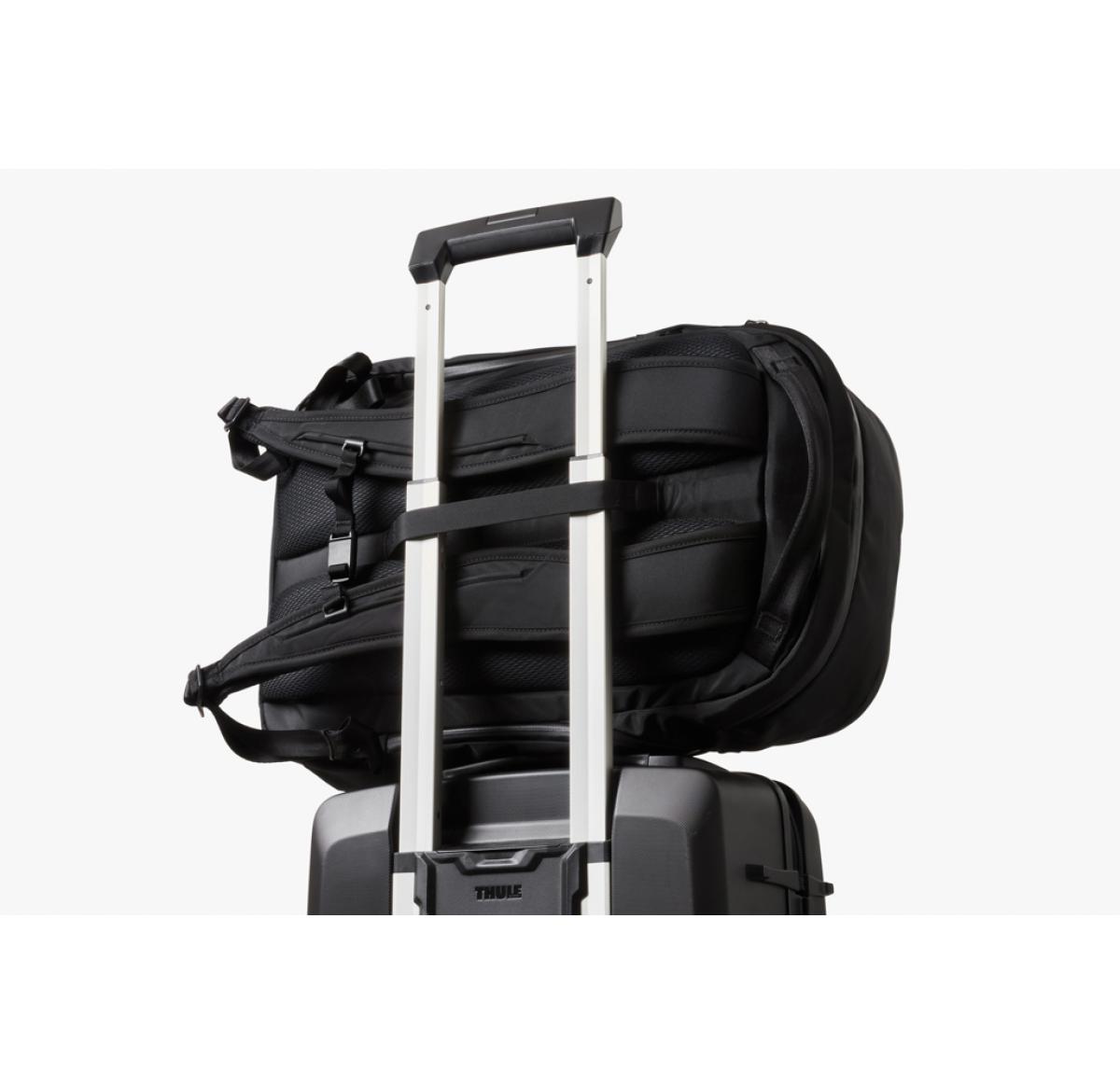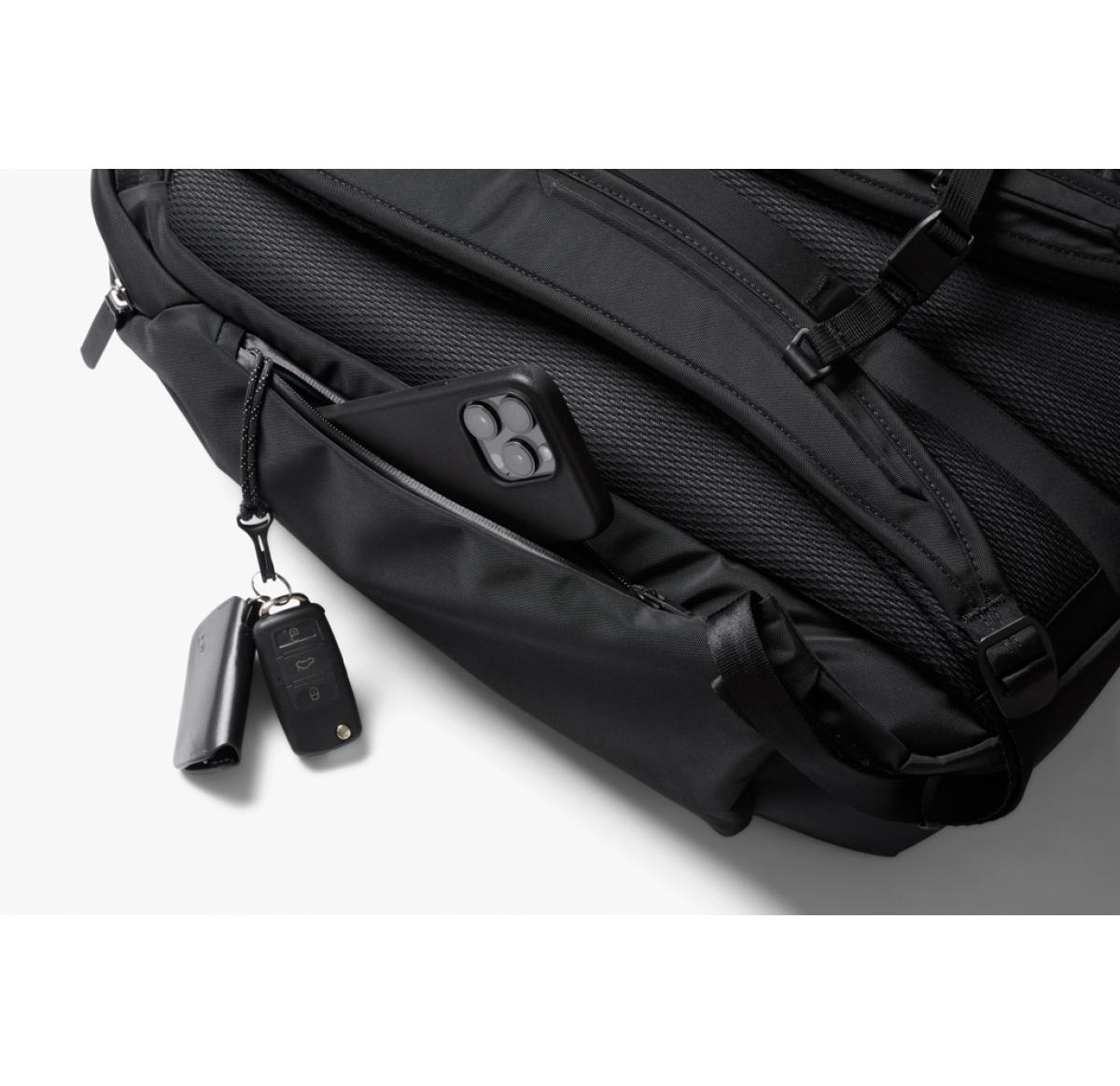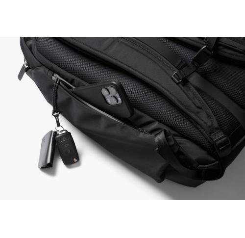 An extra capacity backpack built to flex between big commutes, adventure trips and business travel. Quick access 16” laptop compartment for easy airport checks. External-access pockets invisibly store a passport, wallet, water bottle and more. Front pocket with key clip. Soft-lined sunglasses pocket.Padded shoulder straps, contoured back panel and sternum strap for carrying comfort. Internal compression straps to help reduce bulk and keep things in place. Internal Apple AirTag slip pocket.